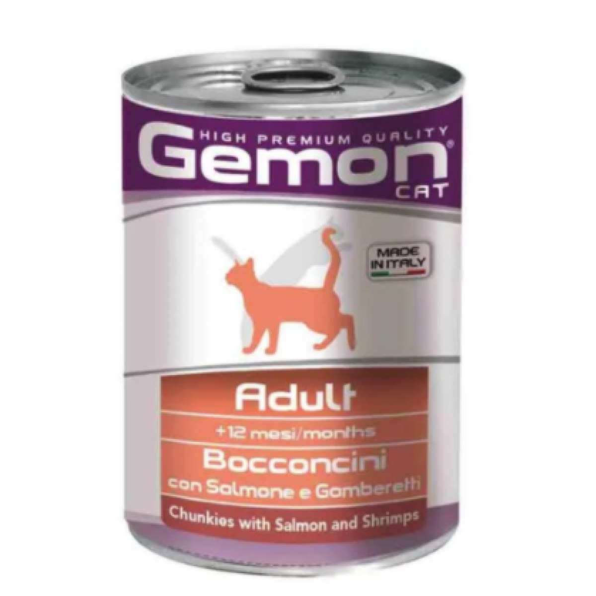 Gemon Консервы Cat Adult Salmon/Shrimps - это полноценный, сбалансированный влажный корм с кусочками лосося и креветок.