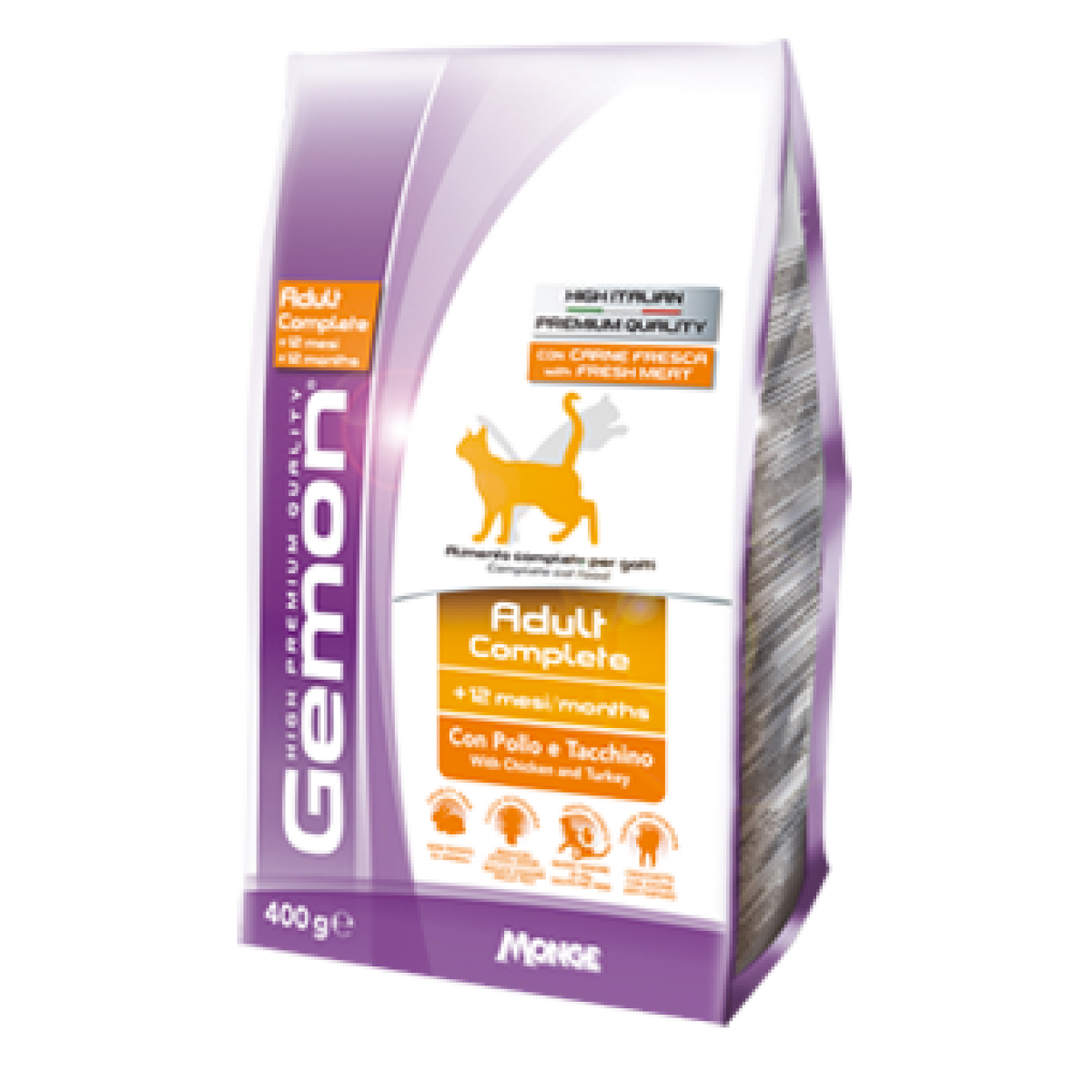 Gemon Cat Adult Complete (Курица, индейка) - это полнорационный корм для взрослых кошек с нормальной активностью.