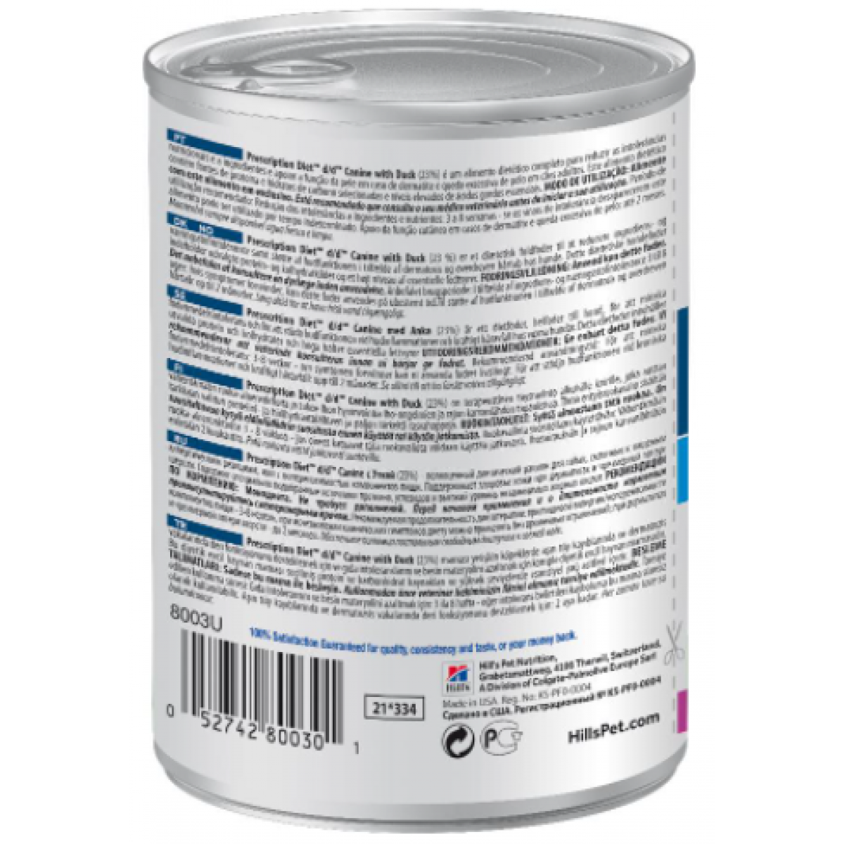 Prescription Diet™ Canine d/d™ Duck разработан для поддержания здоровья собак при кожных реакциях и рвоте/диарее в случае аллергии.