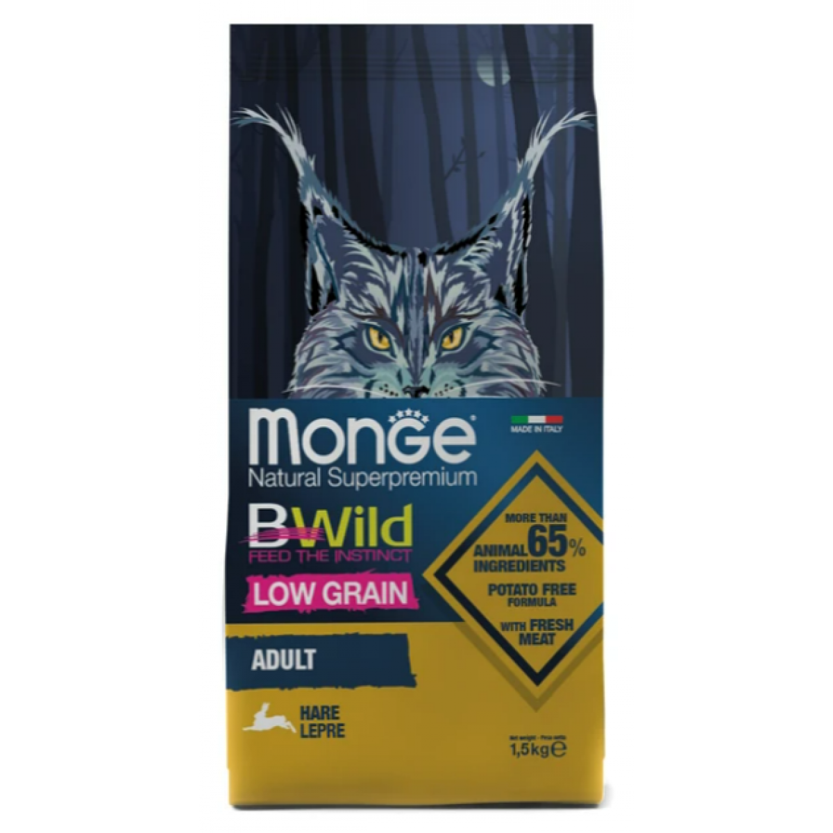 Monge Cat Bwild Low Grain Adult Hare (низкозерновой с мясом зайца для взрослых кошек)