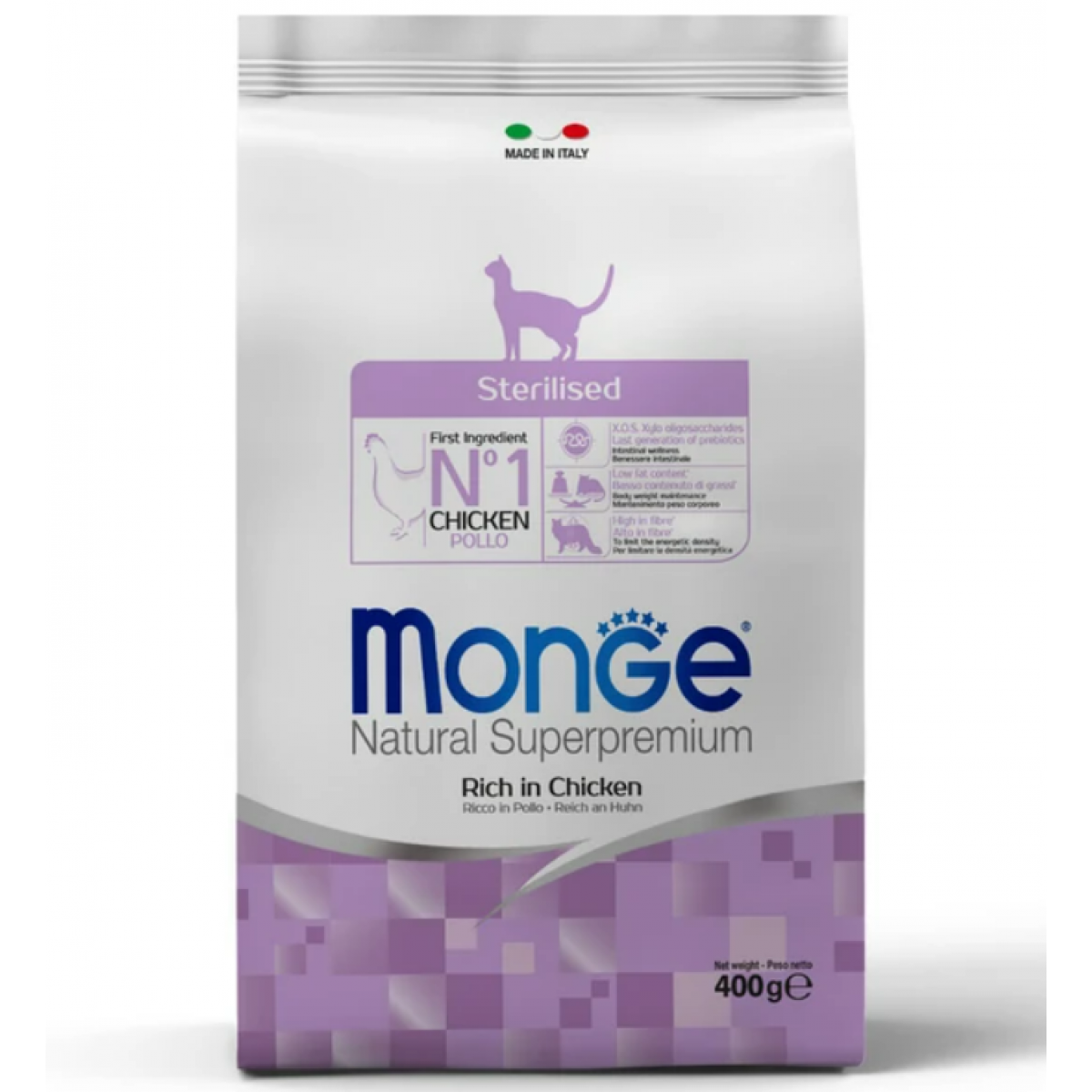Monge Sterilised Cat - это сбалансированный рацион для стерилизованных кошек. Корм содержит пониженное количество калорий, обеспечивающее профилактику ожирения. В состав входят важнейшие антиоксиданты для поддержания иммунной системы.