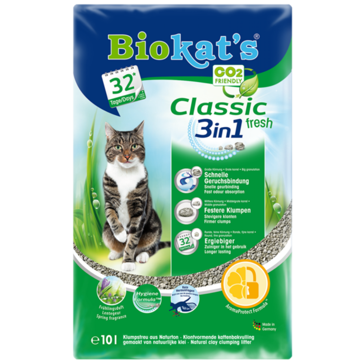 Biokat's Classic fresh 3 в 1 - комкующийся наполнитель для кошачьего туалета с весенним ароматом , гранулы трёх видов.