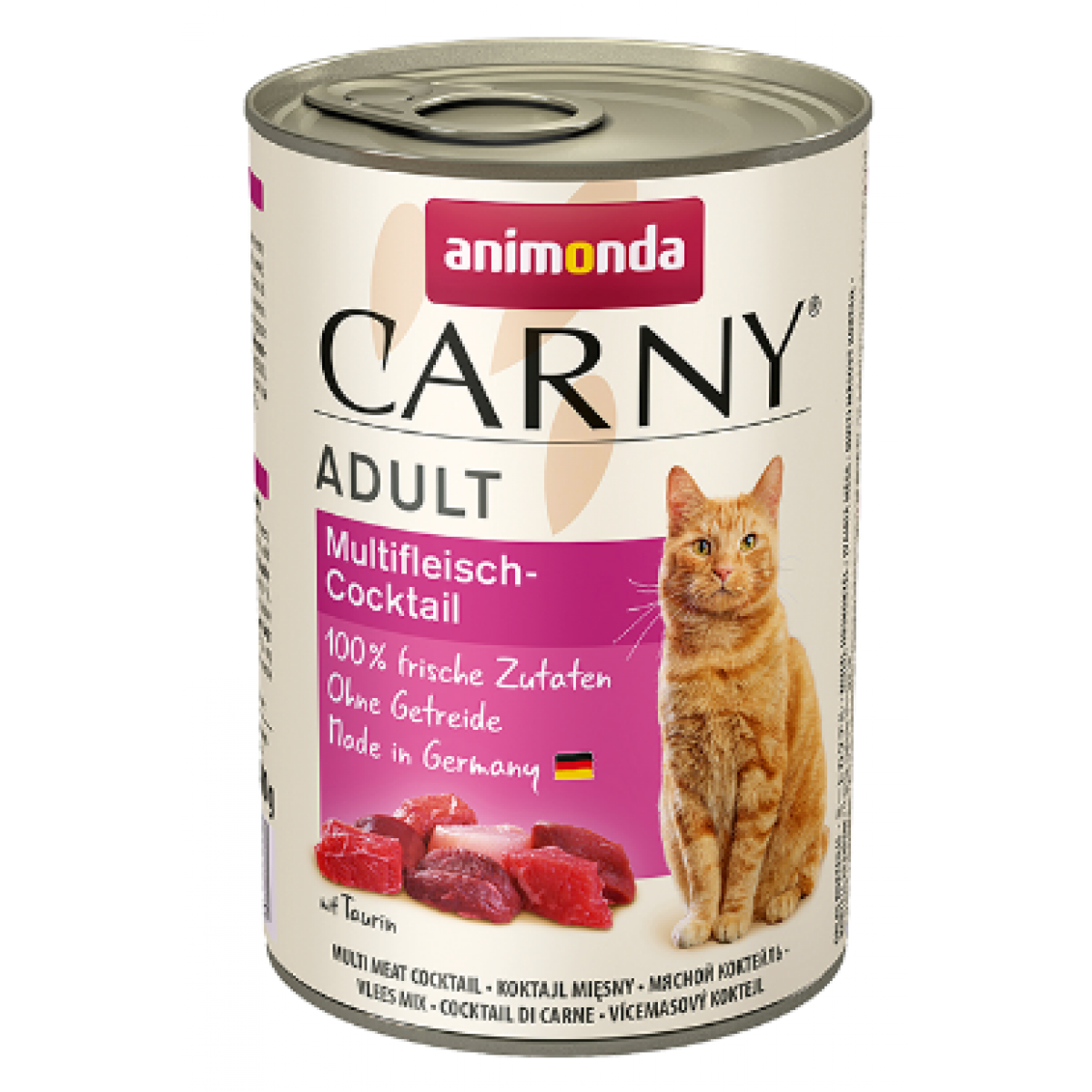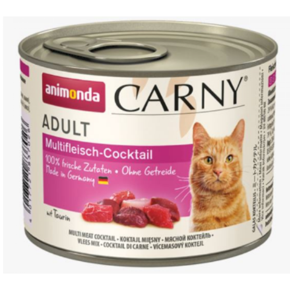 Carny Adult (Мультимясной коктейль) - это вкуснейшие мясные консервы, созданные для взрослых кошек всех пород. В состав не входит соя, искусственные красители, консерванты и другие добавки.