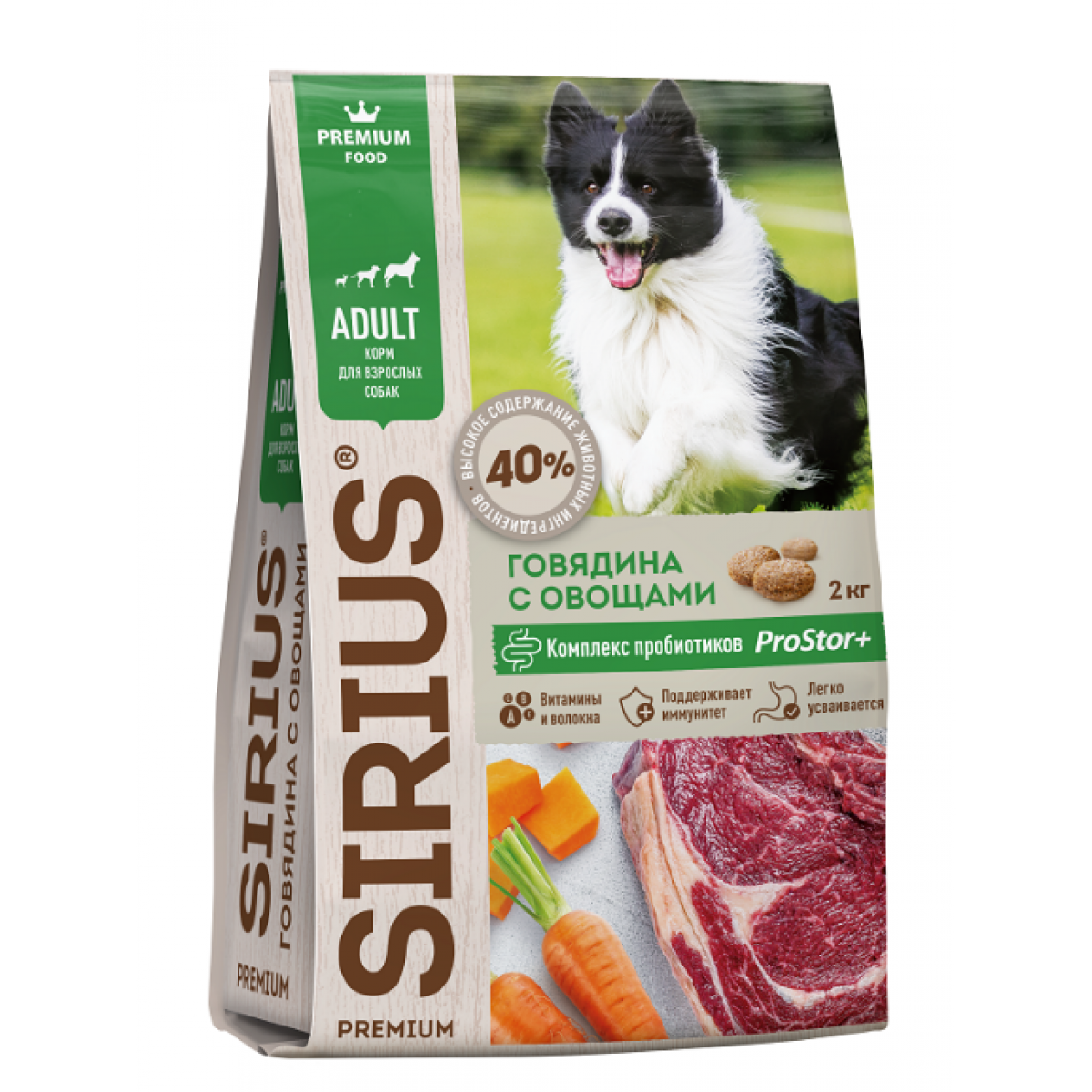 SIRIUS — сухой корм премиум-класса для полноценного ежедневного рациона взрослых собак. Высокое содержание мясных ингредиентов обеспечивает оптимальный уровень белка и укрепляет мышцы. Баланс витаминов и комплекса пробиотиков 4-го поколения PROSTOR+ нормализует пищеварение и укрепляет иммунитет. Омега 3 и Омега 6 способствуют поддержанию здоровья сердца, мозга, нервной системы, здоровья кожи и красоты шерсти.