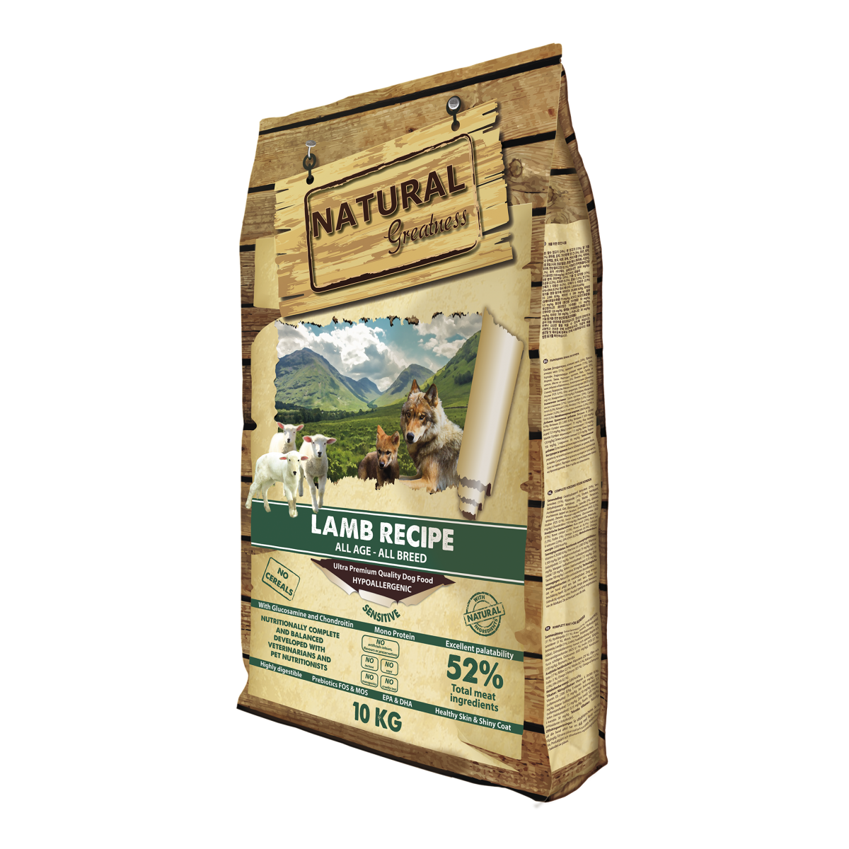 Natural Greatness Lamb Recipe Sensitive - превосходный гипоаллергенный монопротеиновый корм холистик с ягненком, приготовленный без зерна, с высокой усвояемостью и идеально разработан для всех возрастов и собак с чувствительным пищеварением. Укрепляет суставы и улучшает иммунную систему собаки. Все ингредиенты были отобраны за их низкую аллергенность и высокое стандартное качество, что делает его идеальным для собак с чувствительностью к курице или другим видам мяса.