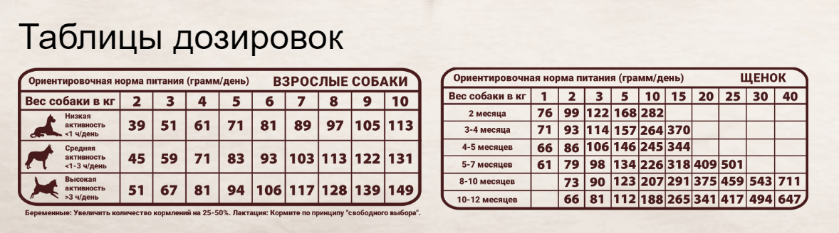 Сырой белок (29%), Сырые масла и жиры (17%), Сырая клетчатка (2,5%), Сырая зола (6,5%), Кальций (1,5%), Фосфор (1%), Омега-3 жирные кислоты (0,5%), Омега-6 жирные кислоты (2,9%), ЭПК+ДГК (0,3%).