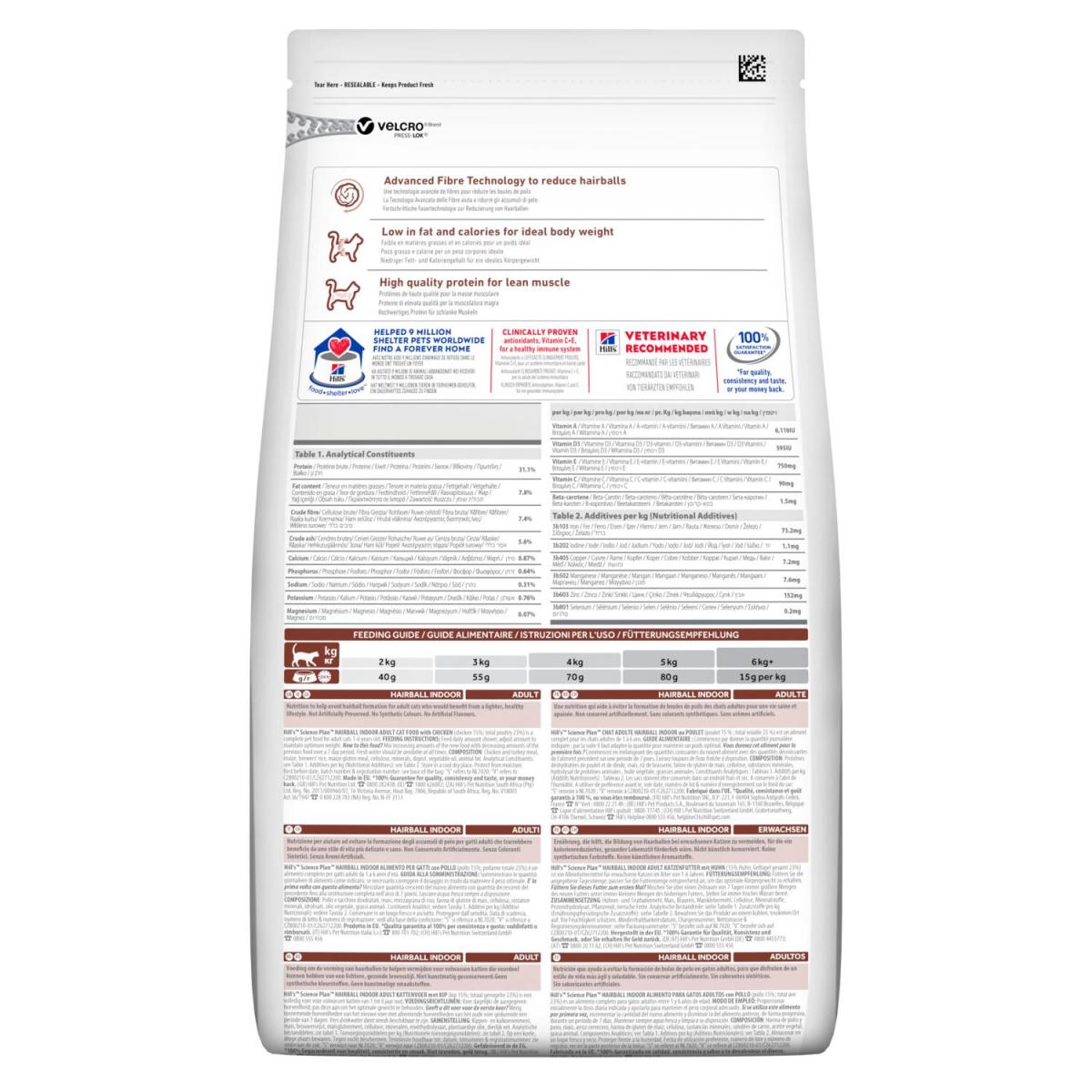 Никто не любит волосяные комочки - особенно ваша взрослая кошка. Сухой корм для домашних кошек и котов для выведения шерсти HILL'S SCIENCE PLAN Hairball Indoor помогает уменьшить образование волосяных комочков в желудке у взрослых кошек, живущих в квартире, благодаря передовой технологии использования пищевых волокон. Корм содержит меньше жира и калорий для поддержания идеального веса, а также высококачественный белок для поддержания мышечной массы.