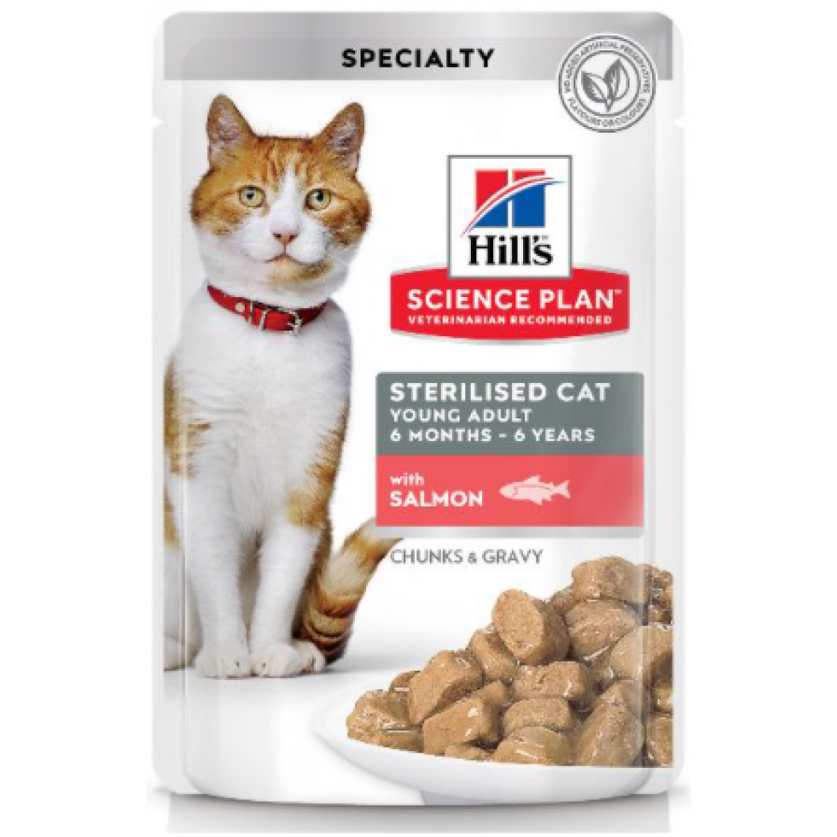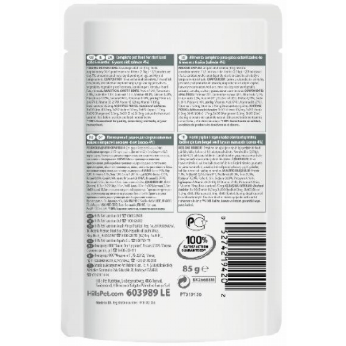 Hill's Science Plan Sterilised (стерилизованным кошкам и кастрированным котам от 6 месяцев до 6 лет с лососем в соусе) 85г х 12шт
