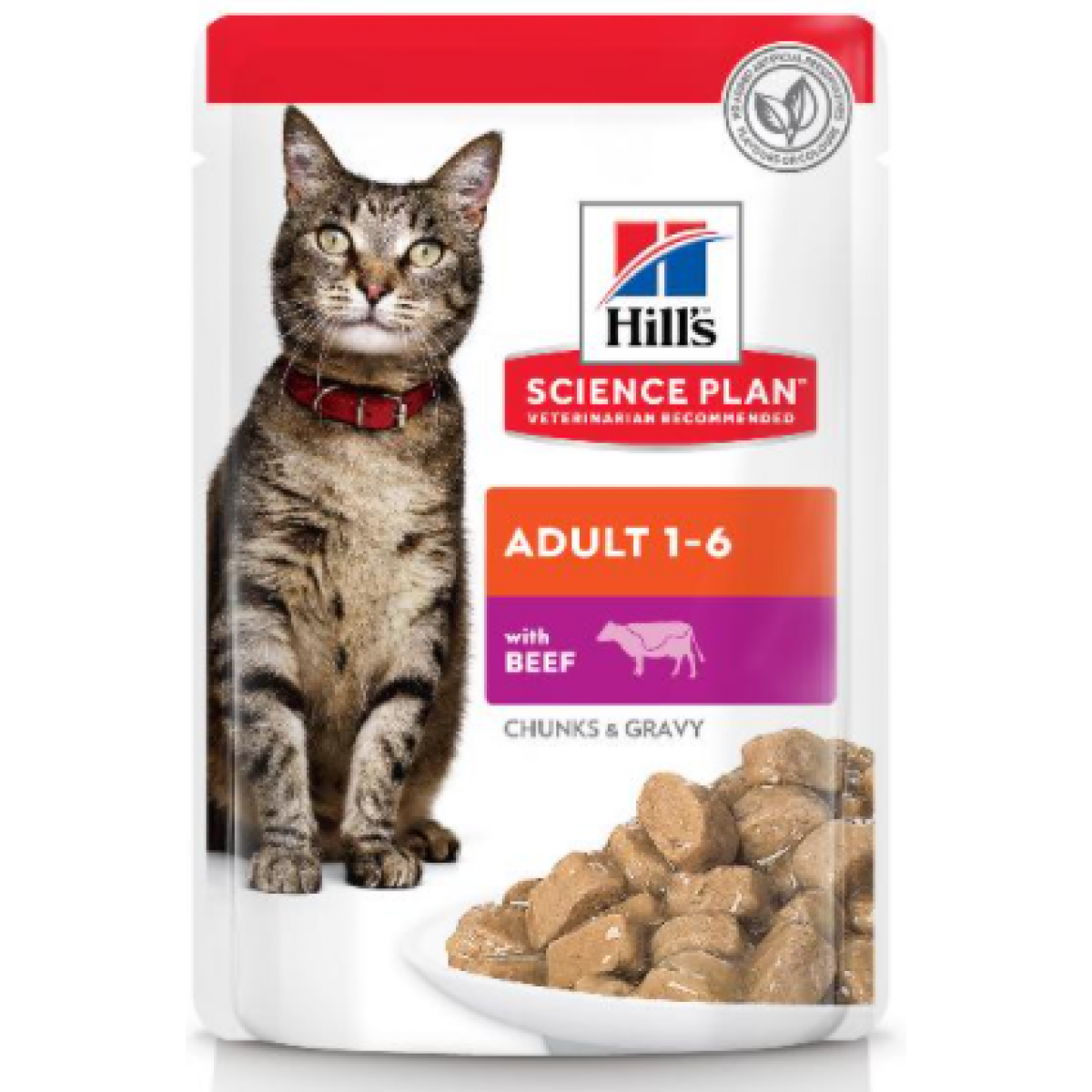 Hill's Science Plan (взрослым кошкам для поддержания жизненной энергии и иммунитета с говядиной в соусе) 85г х 12шт