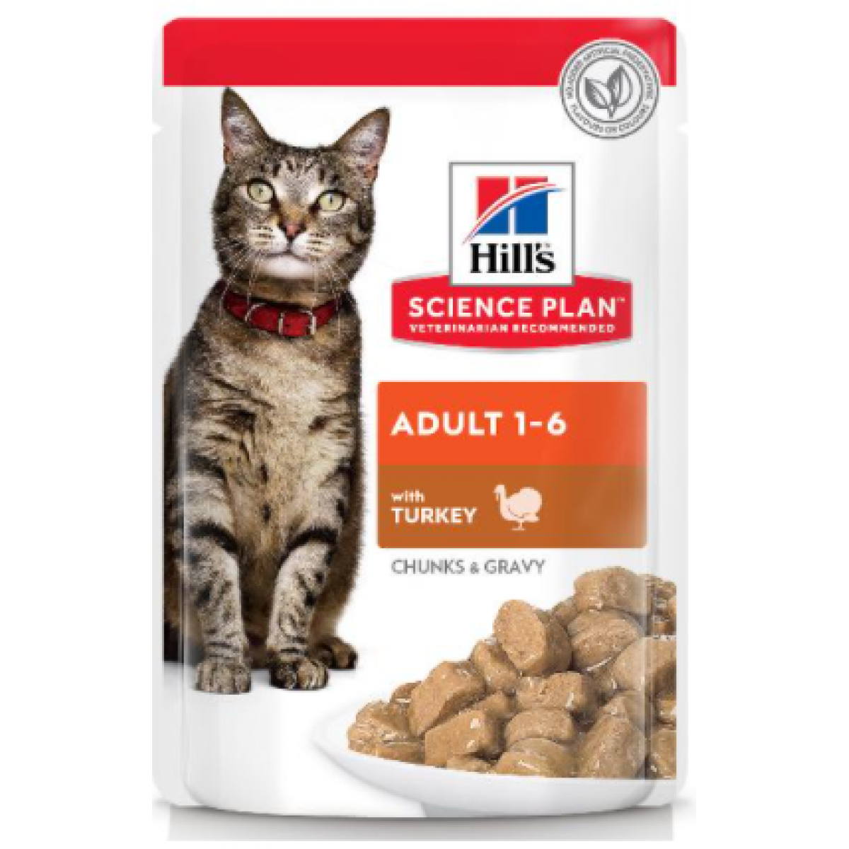 Ваша взрослая кошка нуждается в корме, который поддерживает здоровое пищеварение, блестящую шерсть, мышечную массуи здоровый иммунитет. Влажный корм для взрослых кошек с индейкой, в форме пауча HILL'S SCIENCE PLAN изготовлен из высококачественных, легко усваиваемых ингредиентов и специально создан для удовлетворения энергетических потребностей взрослых кошек.