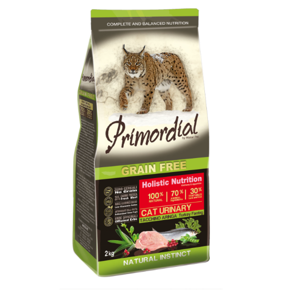 Primordial Cat Adult Urinary (Индейка и сельдь) - это полноценный беззерновой корм класса холистик для взрослых и пожилых кошек с индейкой и сельдью для профилактики МКБ.