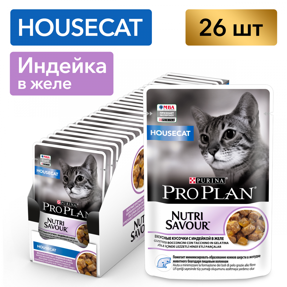 Pro Plan NutriSavour HOUSECAT (влажный корм для кошек живущих дома с индейкой в желе) 85г х 26шт