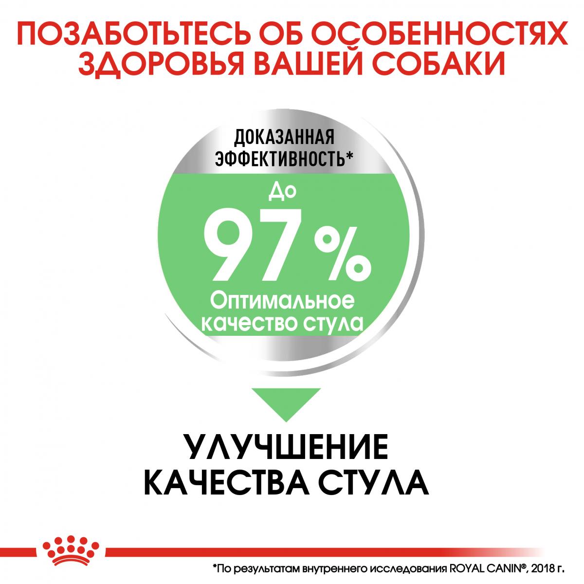 Корм ROYAL CANIN® Digestive Care Maxi имеет доказанную эффективность. ROYAL CANIN® было проведено исследование, согласно которому 97% владельцев заметили улучшение качества стула собаки, что свидетельствует о нормализации состояния желудочно-кишечного тракта в целом.