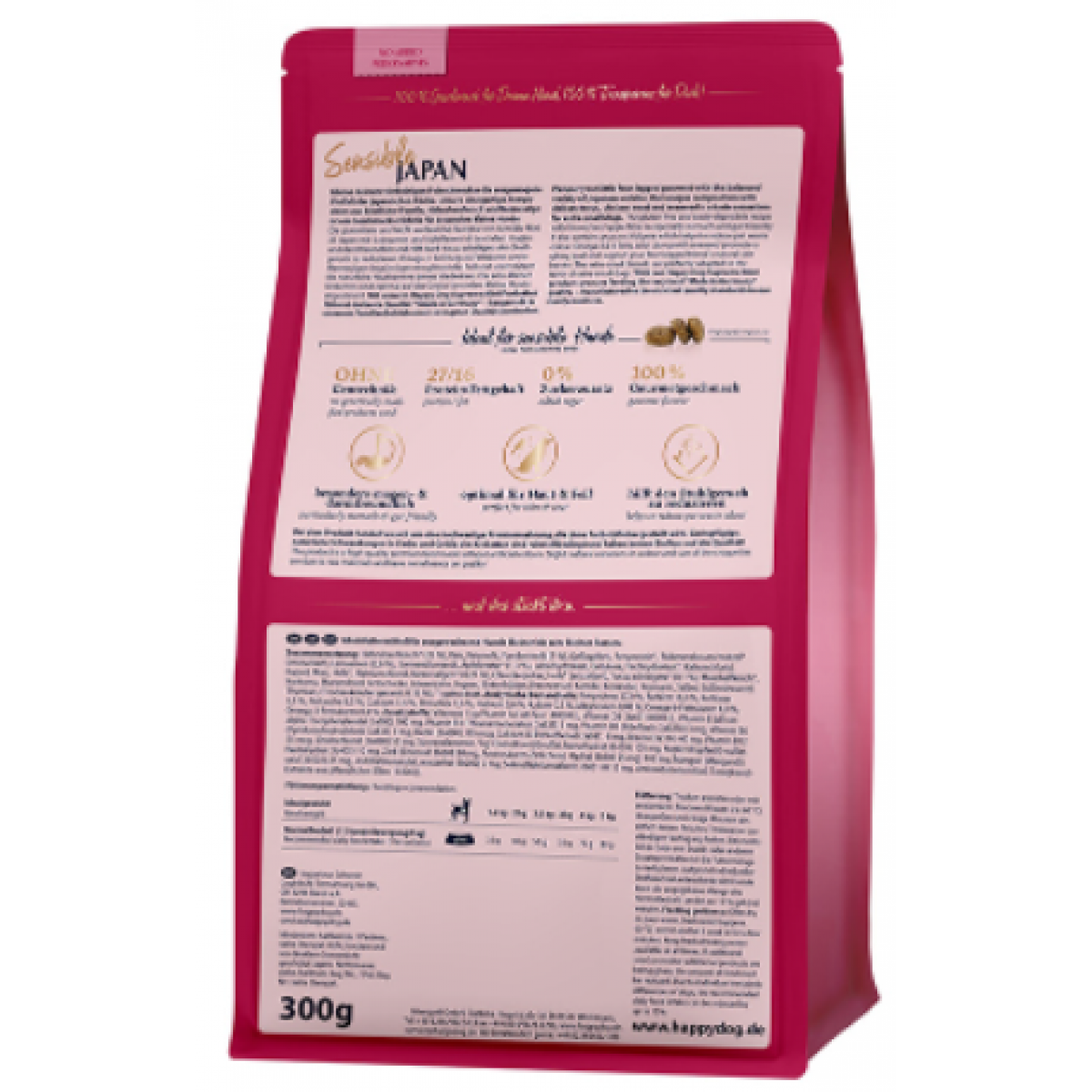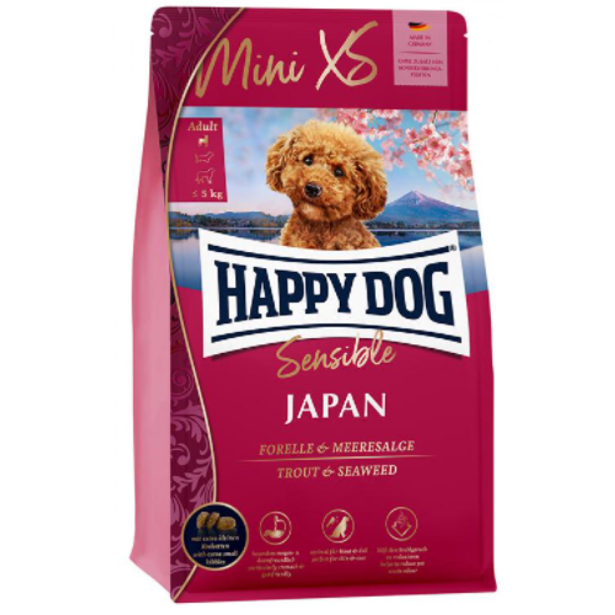 Happy Dog Mini XS Sensible Japan - уникальная композиция из восхитительной форели, домашней птицы и морских водорослей доставит удовольствие особенно маленьким питомцам.