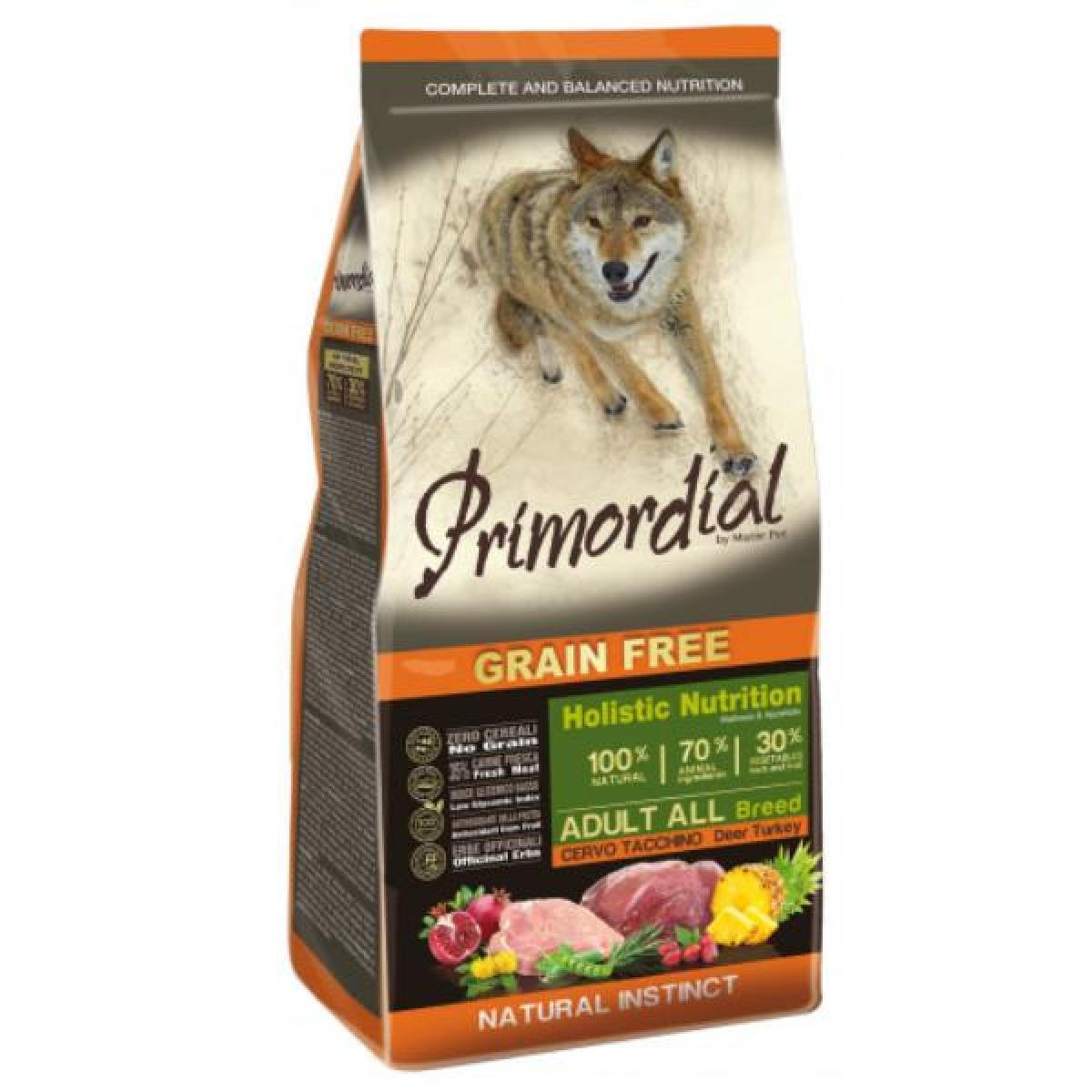 Primordial Dog Adult Deer&Turkey - это полноценный беззерновой корм класса холистик для взрослых собак всех пород с олениной и индейкой.