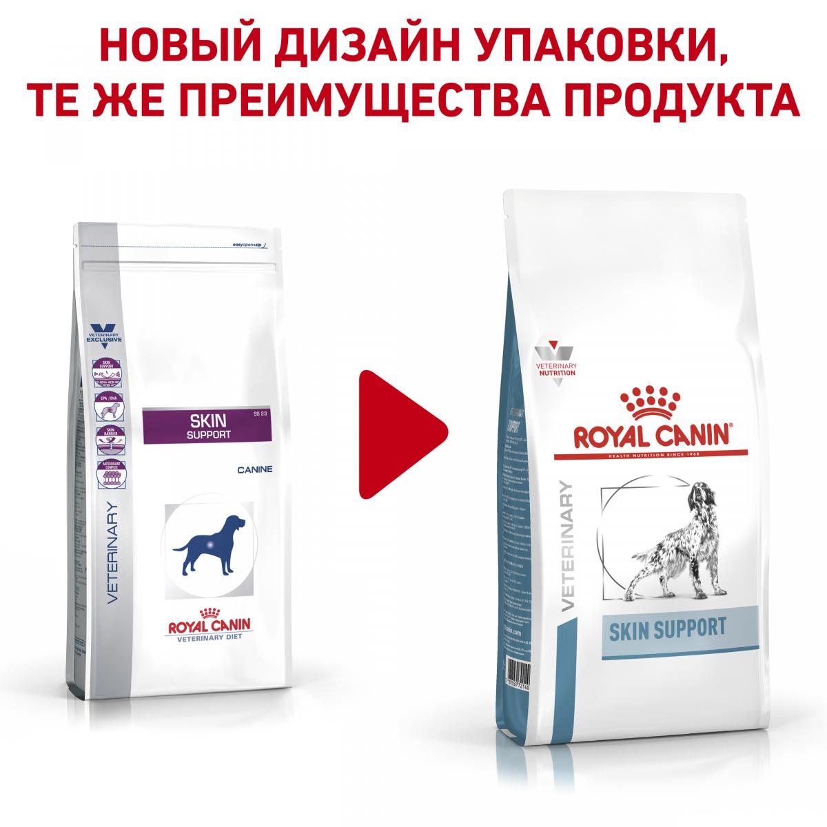 Сухой корм ROYAL CANIN® SKIN SUPPORT (Скин Саппорт) — полнорационный диетический корм для собак, предназначенный для поддержания защитных функций кожи при дерматозах и чрезмерном выпадении шерсти. Корм с повышенным содержанием незаменимых жирных кислот. РЕКОМЕНДАЦИИ: Посоветуйтесь с вашим ветеринарным врачом по поводу целесообразности использования данного корма. Курс применения сухого корма SKIN SUPPORT — до 2 месяцев.