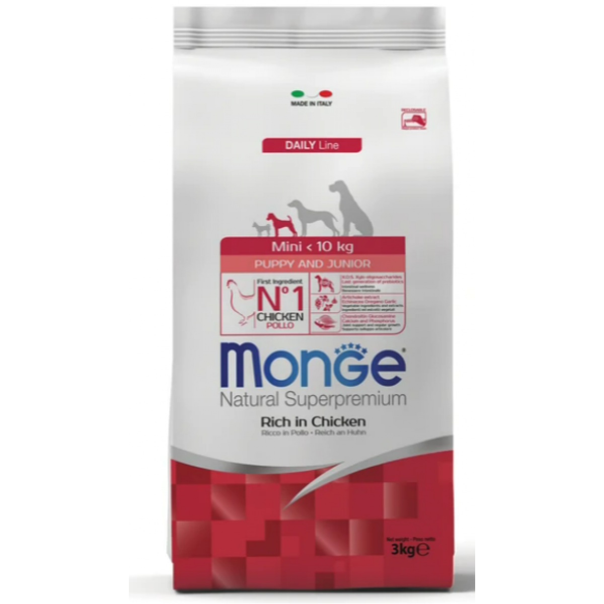 MONGE SUPERPREMIUM DOG MINI PUPPY & JUNIOR - это полноценный сбалансированный рацион для щенков мелких пород. Корм отлично усваивается и способствует правильному развитию щенка.