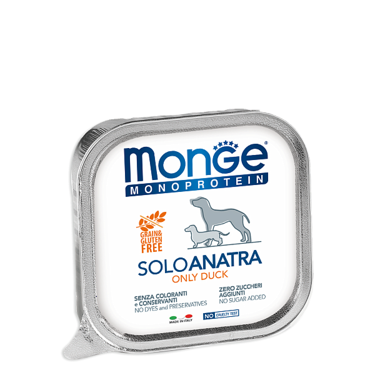 Monge Dog Solo Adult Duck - это монобелковый паштет для собак из свежего мяса домашней утки мясных пород.