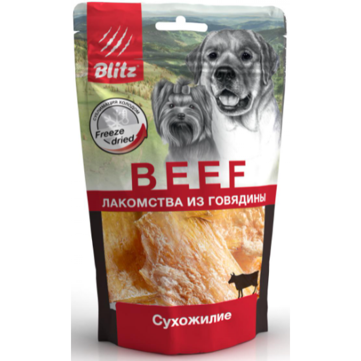 BLITZ Лакомство для собак Сухожилие - сублимированное лакомство производится из свежего сырья, имеет естественную текстуру и лёгкий, ненавязчивый запах, практически незаметный для человека, зато очень привлекательный для собак. Так что ваш питомец ни за что не откажется погрызть аппетитную жилку, а для вас, как для любящего хозяина, важно и другое — удовольствие в данном случае сочетается с большой пользой.