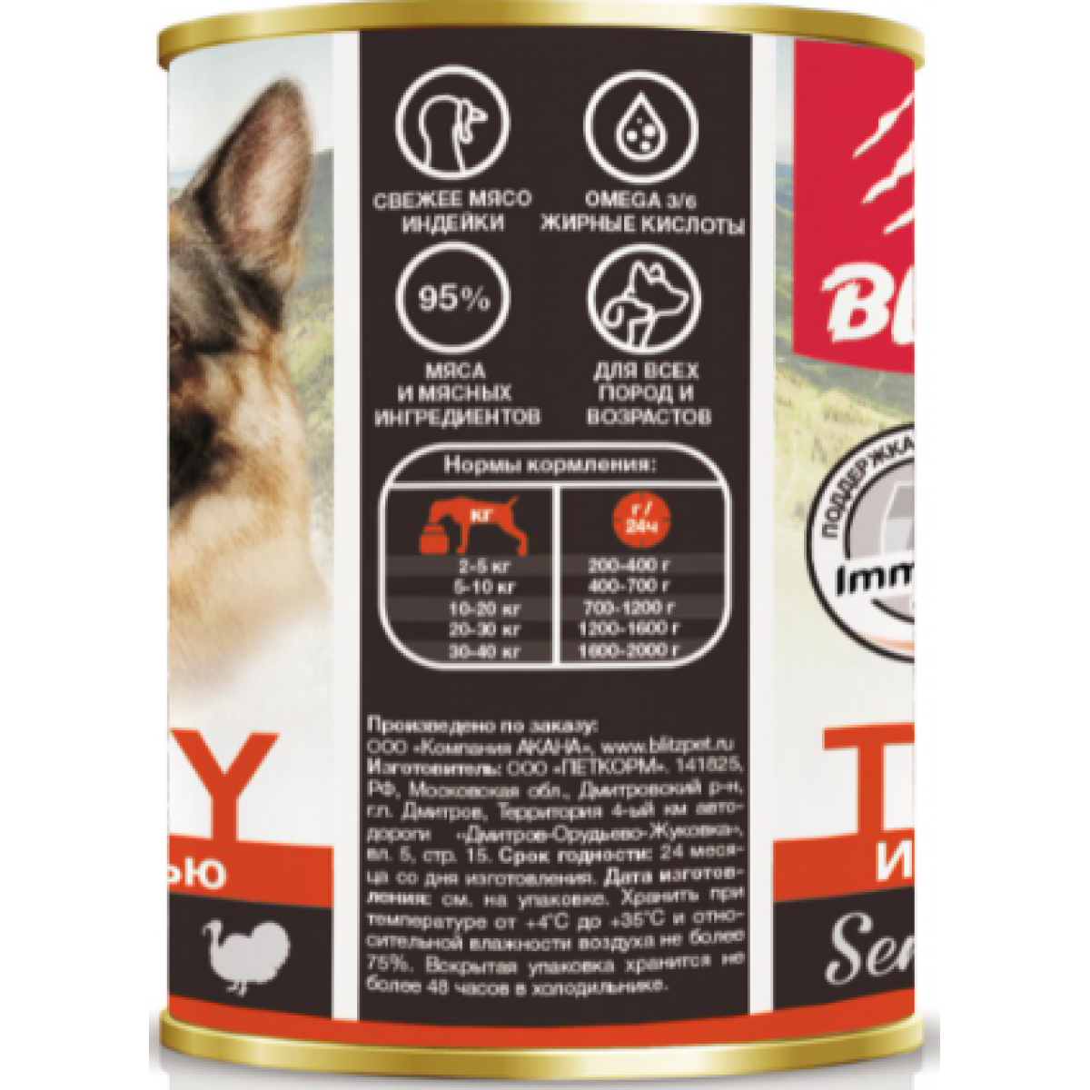 BLITZ Sensitive Dog (консервированный корм для собак всех возрастов с индейкой и печенью)