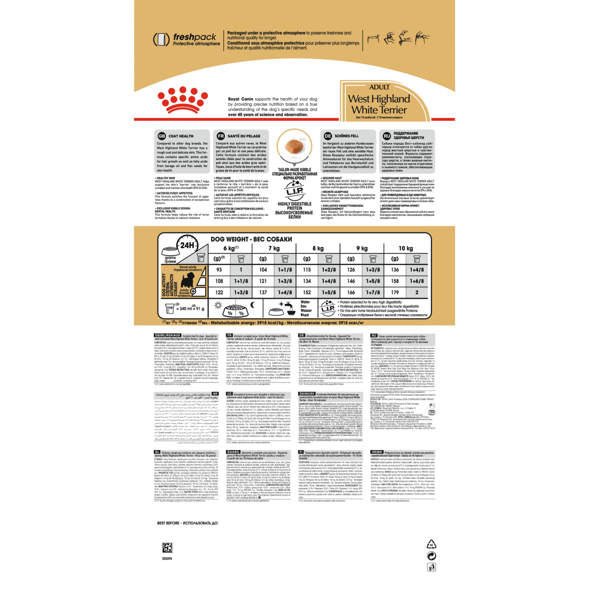 Формула West Highland White Terrier Adult способствует поддержанию барьерной функции кожи (благодаря эксклюзивному комплексу) и улучшает ее здоровье (благодаря жирным кислотам EPA и DHA).