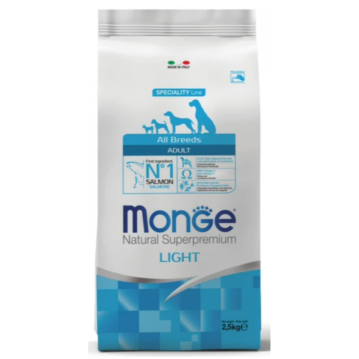 Ингредиенты: рыба (26% дегидрированного и 10% свежего лосося), рис, кукуруза, сухая свекольная пульпа, пивные дрожжи (источник МОС и витамина B12), гидролизованный белок рыбы, рыбий жир (масло лосося, консервированное с помощью натуральных антиоксидантов), кукурузная глютеновая мука, карбонат кальция, КОС (ксилоолигосахариды 3 г/кг), гидролизованные дрожжи (МОС), юкка Шидигера, спирулина, гидролизованные хрящи (источник хондроитина сульфата), гидролизованные ракообразные (источник глюкозамина), метилсульфонилметан, корень эхинацеи, орегано, порошок сушеного чеснока.