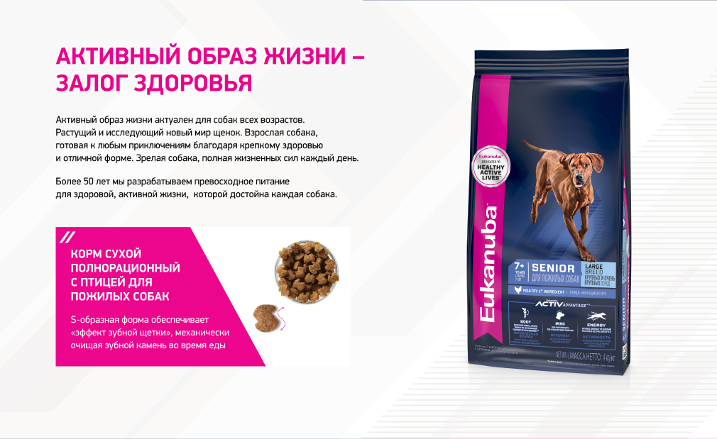 Eukanuba Senior 7+ Large Breed (для пожилых собак крупных и очень крупных пород старше 7 лет, с птицей)
