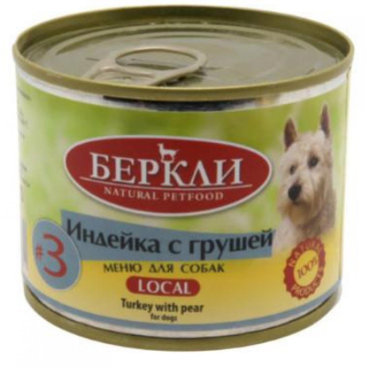 Berkley Local для собак №3 (Индейка, груша)- полнорационное консервированное питание для собак всех стадий жизни - индейка с грушей.