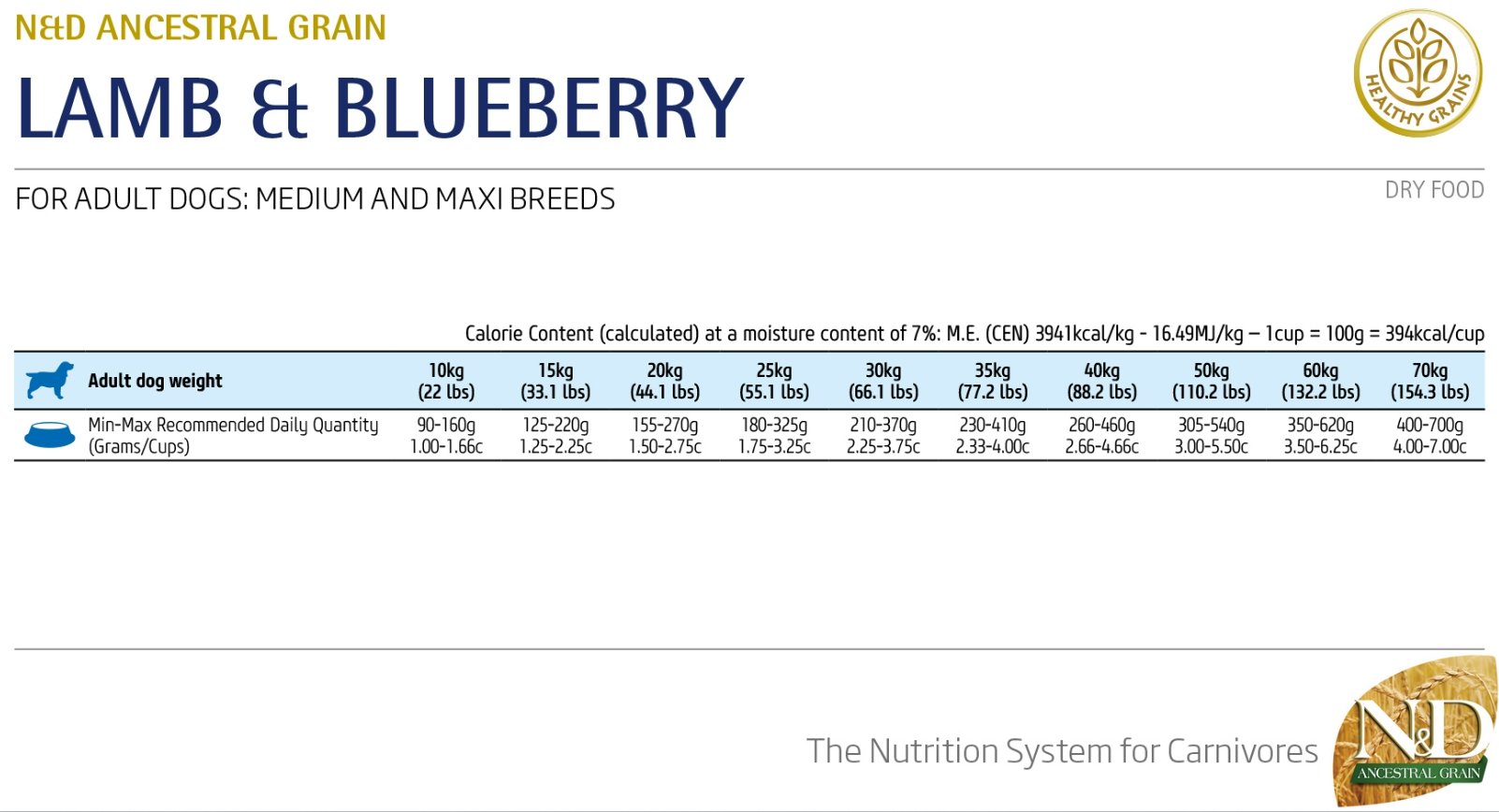 Нормы кормления указаны в таблице на упаковке. Всегда оставляйте вашей собаке чистую миску свежей воды в течение суток. При переводе на N&D рекомендуется постепенно замещать предыдущий корм на новый. Хранить в прохладном, сухом месте. Произведено за 18 месяцев до окончания срока годности, указанного на упаковке. Производится из ингредиентов преимущественно из Италии, Дании и Франции.