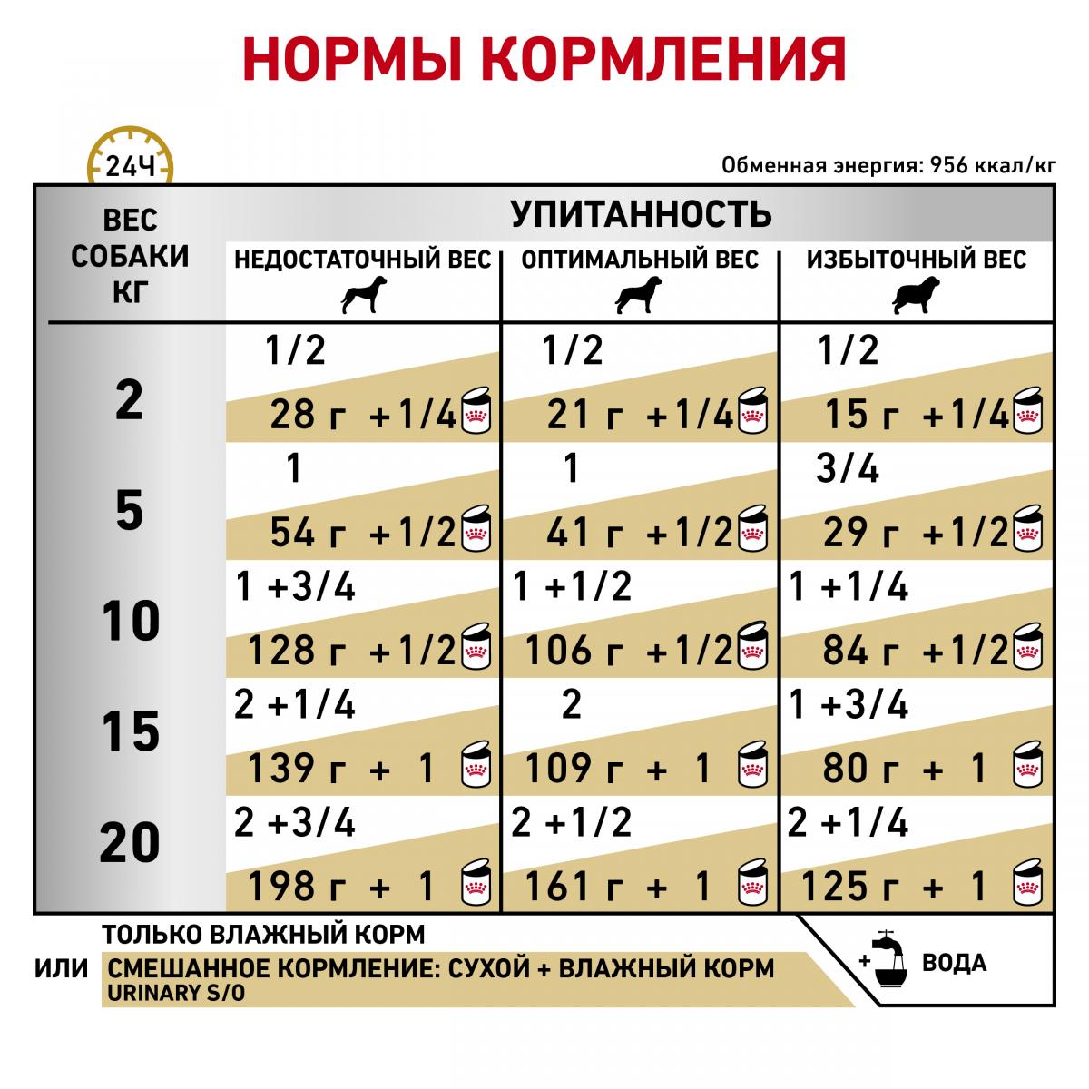 С целью растворения струвитных камней диетический рацион назначают для применения в течение 5-12 недель. В случае инфицирования мочевыводящих путей срок назначения Urinary S/O Canine в комплексе с антибиотиком должен составить не менее одного месяца после получения отрицательных результатов бактериологического анализа мочи.
