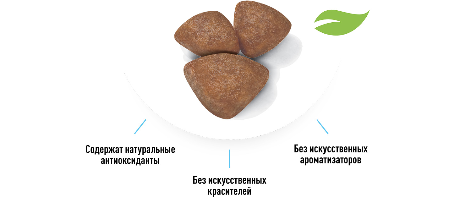 Комплекс питательных веществ, включающий высококачественные белки (L.I.P.*) и пребиотики (фруктоолигосахариды), благоприятно воздействует на пищеварительную систему, поддерживая баланс кишечной флоры и оптимальную консистенцию стула.