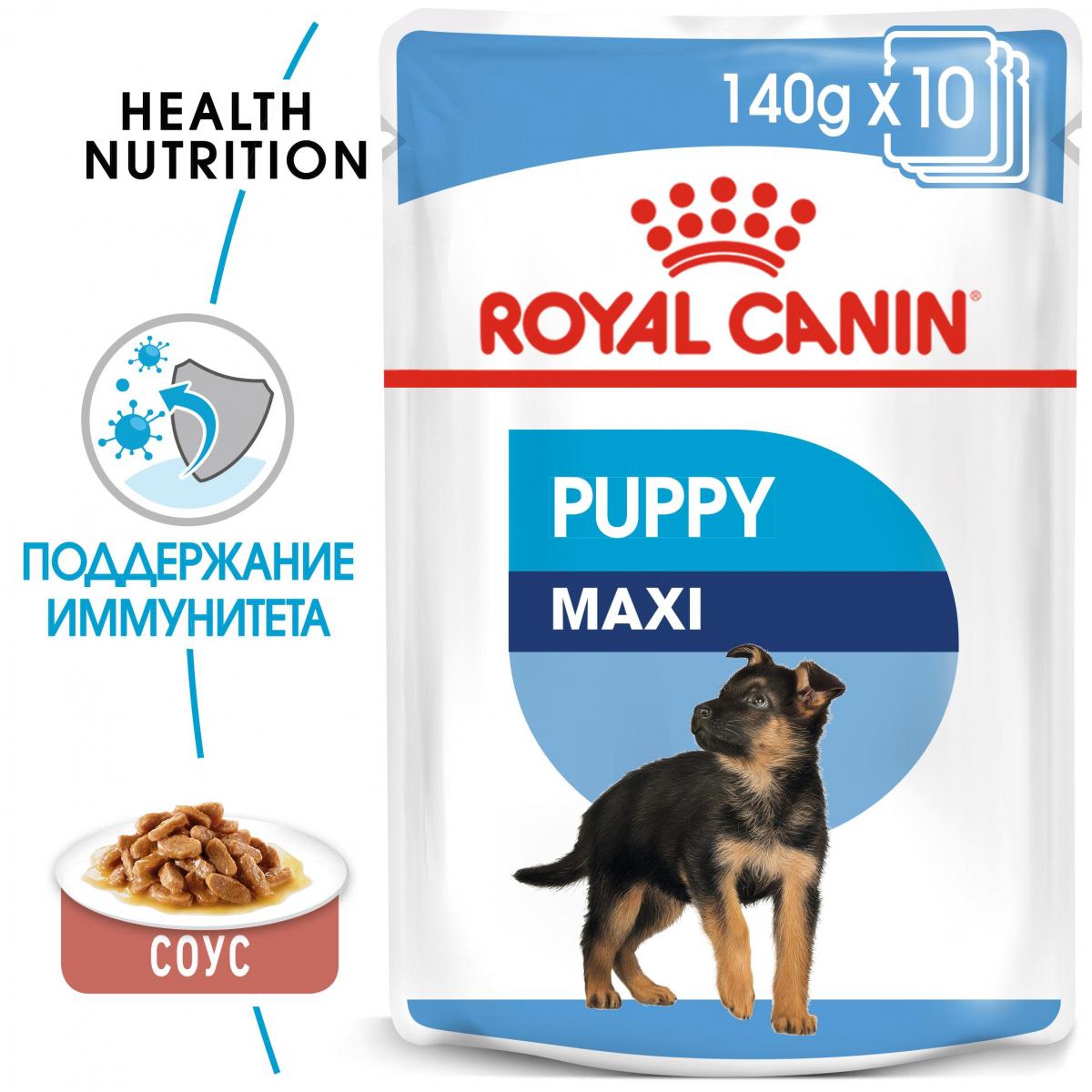 «ROYAL CANIN® Maxi Puppy кусочки в соусе» отличается умеренной калорийностью, отвечающей потребностям Вашего щенка крупной породы.