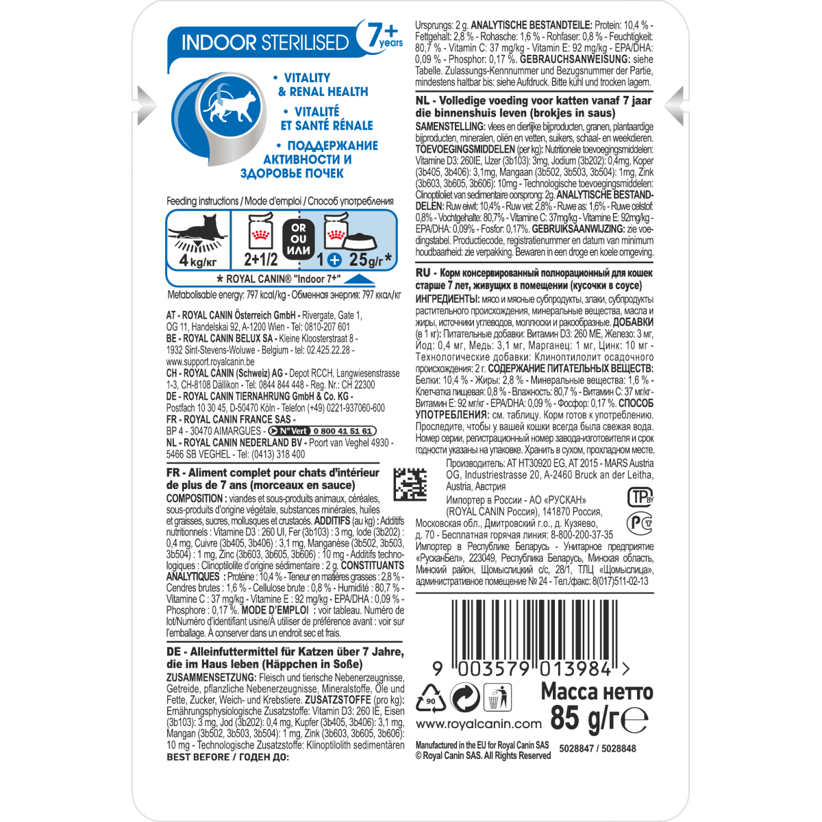 Royal Canin Indoor Sterilized 7+ Корм консервированный для стареющих кошек, постоянно живущих в помещении,соус, 85г