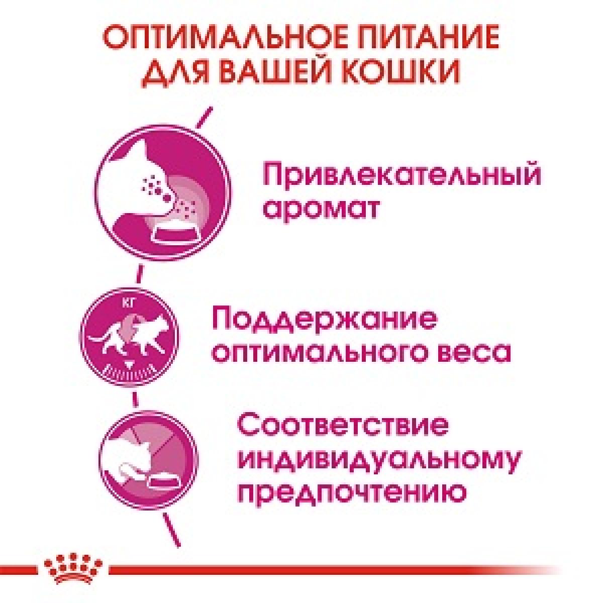 3) Индивидуальные предпочтения: Каждая кошка имеет свои предпочтения при выборе пищи: ароматический профиль, вкусовое разнообразие или уровень содержания протеинов. Исходя из этого, ROYAL CANIN® разработал три рецепта, которые удовлетворят даже самых привередливых кошек.