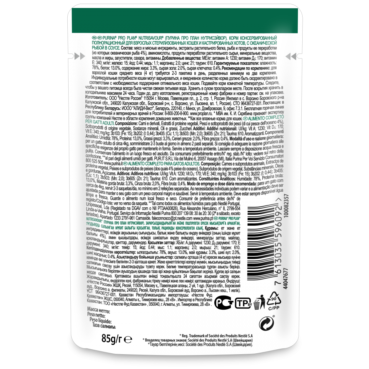 Pro Plan NutriSavour STERILISED (влажный корм для стерилизованных кошек с океанической рыбой в соусе) 85г х 26шт