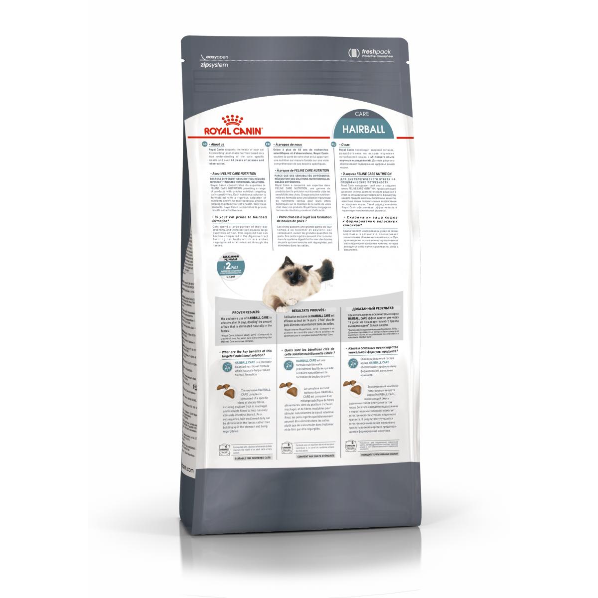 Сбалансированный состав корма Hairball Care обеспечивает профилактику формирования волосяных комочков. Эксклюзивный комплекс питательных веществ корма Hairball Care, включающий смесь различных типов клетчатки (в том числе богатого камедями подорожника и нерастворимых волокон) помогает естественной стимуляции кишечного транзита. В результате улучшается естественное выведение ежедневно проглатываемой шерсти и предотвращается формирование комочков.