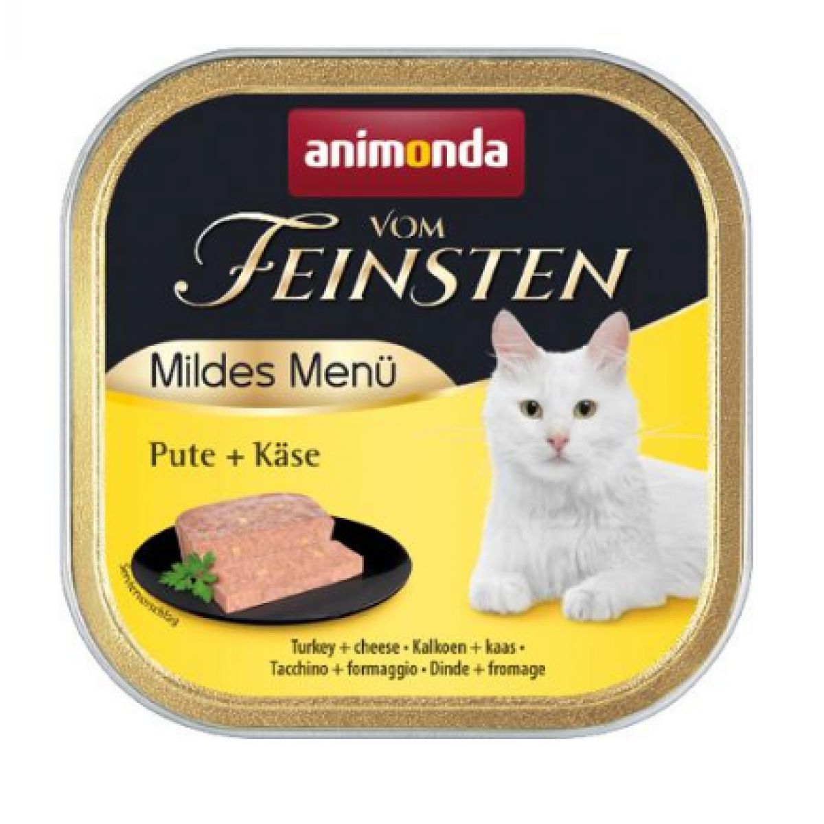 Vom Feinsten Mildes Menu (Индейка и сыр) - это сбалансированное, вкусное, здоровое питание на высшем уровне для взрослых кошек от 1 до 6 лет. Вкусные рецепты, приготовленные исключительно из легкоусвояемого мяса индейки - без субпродуктов и печени - предлагают кошкам особое лакомство. Низкокалорийные рецепты снабжают взрослую кошку всеми необходимыми питательными веществами. Содержит натуральный таурин.