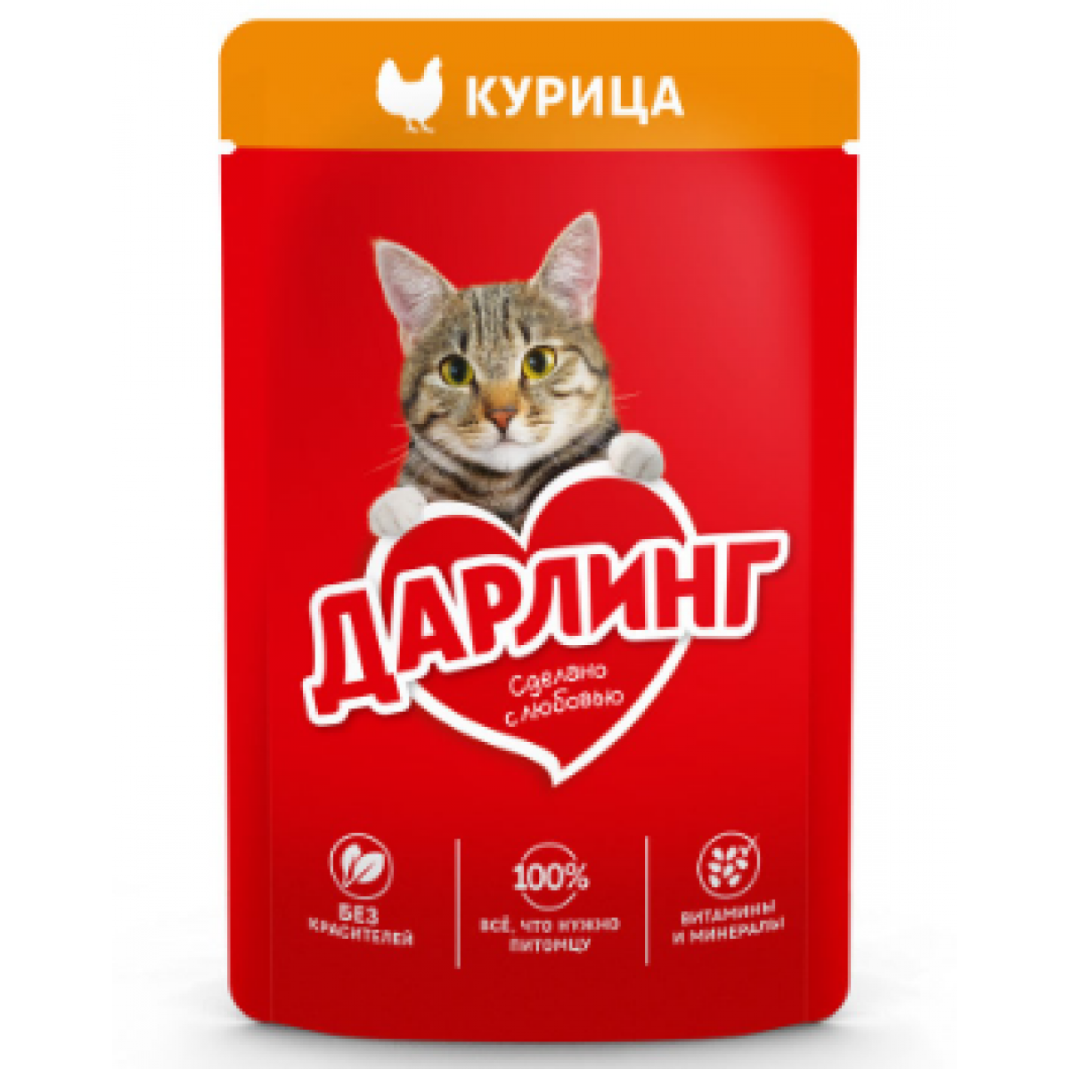Дарлинг Консервы для кошек (курица в подливе)— консервированный полнорационный корм для взрослых кошек, с курицей в подливе.