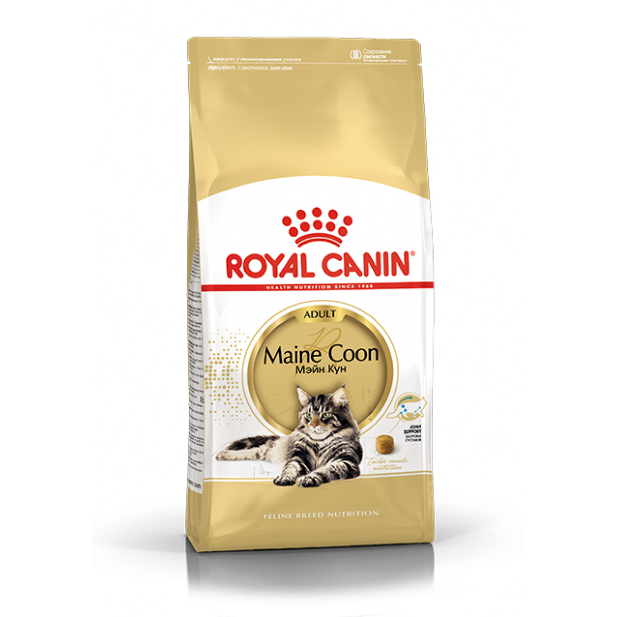 ROYAL CANIN® Maine Coon Adult обогащен таурином, а также ДГК и ЭПК (жирными кислотами омега-3), поддерживающими функцию сердечно-сосудистой системы.