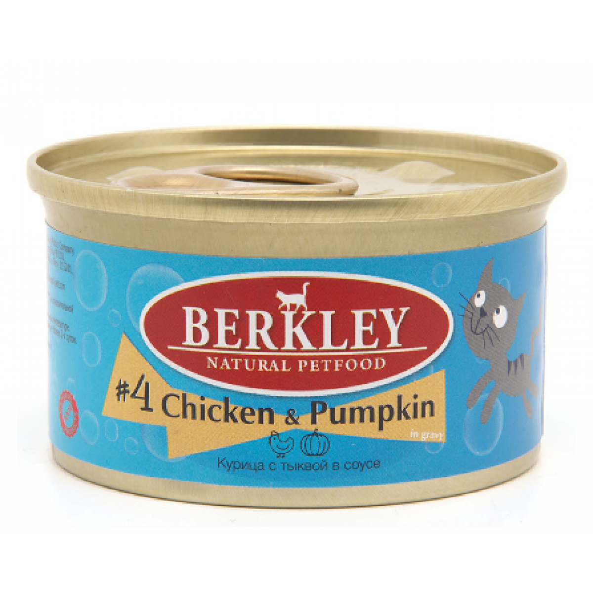 Berkley Tay для кошек №4 (Курица, тыква)- полнорационное консервированное питание для взрослых кошек - кусочки курицы и тыквы в нежном соусе.