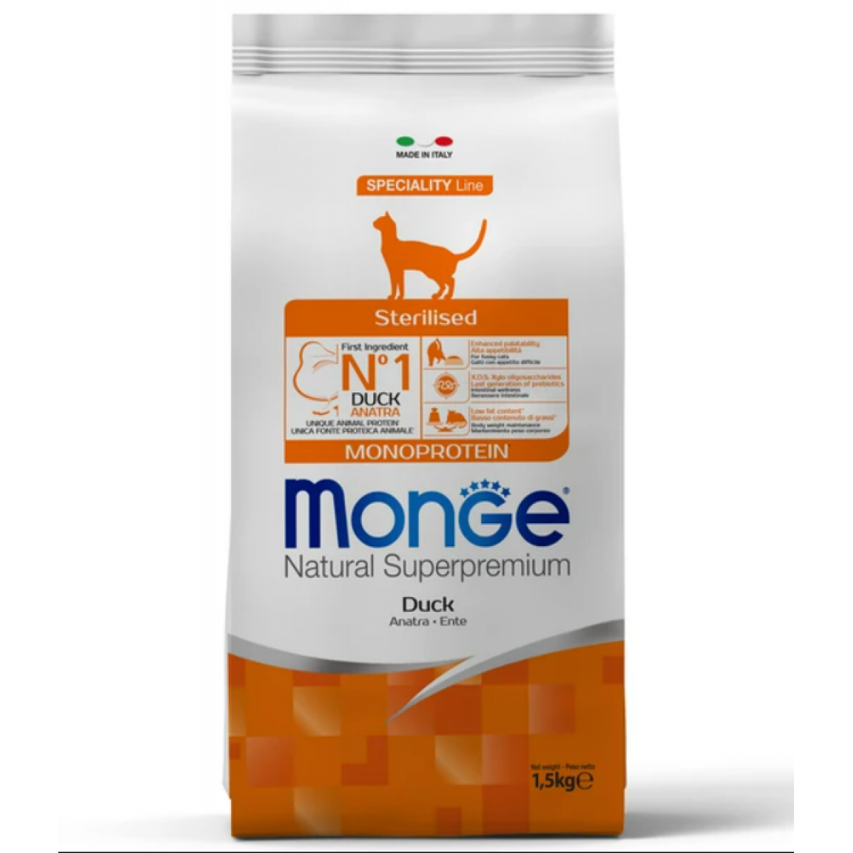 Monge Natural Superpremium Monoprotein Kitten Duck— полноценный и сбалансированный корм для котят. Специально разработан для хорошего самочувствия вашего котенка благодаря наличию масла микроводорослей (Schizochytrium sp.), источника ДГК для нервной и зрительной системы и таурина для правильного развития сердца.