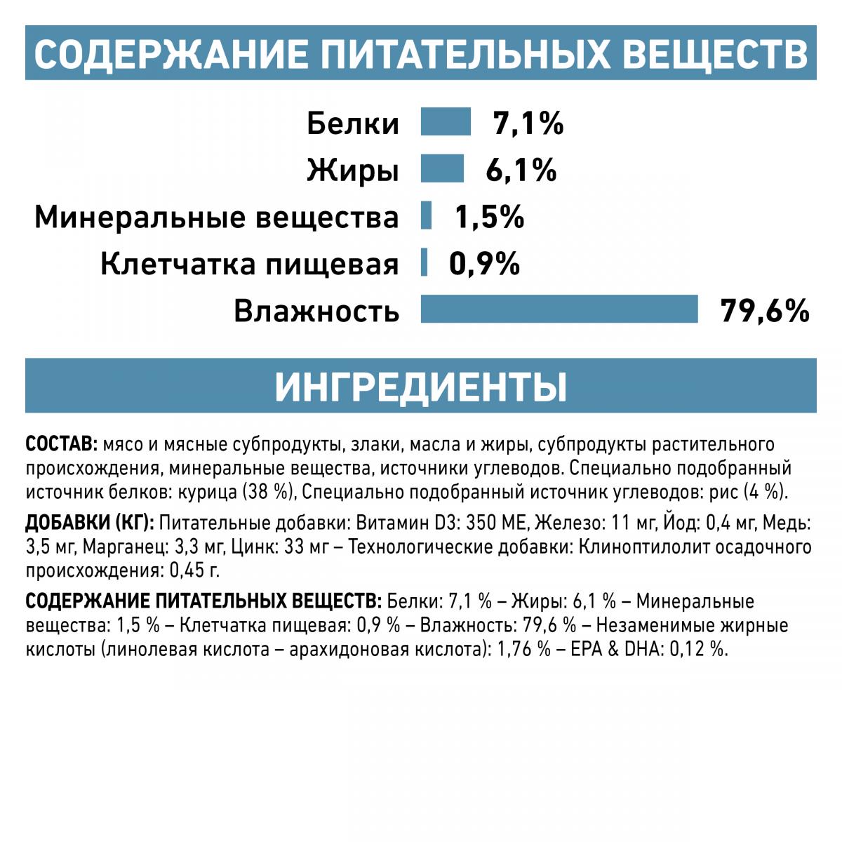 ИНГРЕДИЕНТЫ: Корм консервированный полнорационный диетический для взрослых кошек