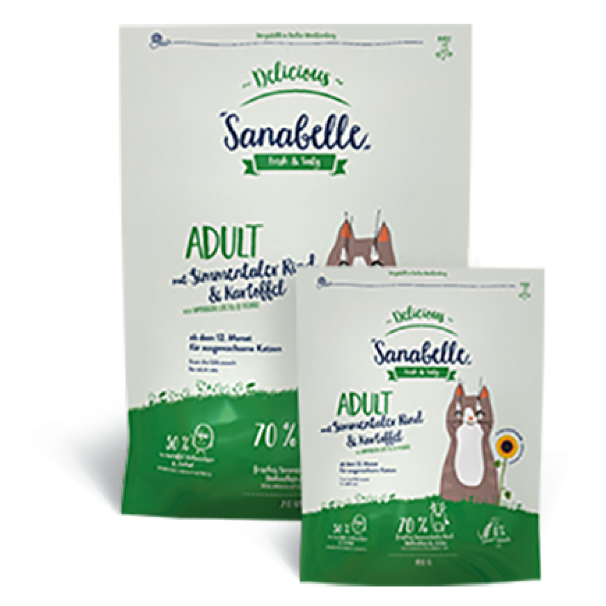 Bosch Sanabelle Delicious with Simmental Cattle & Potato - произведён на основе свежего мяса домашней птицы и высококачественного мяса симментальской коровы без использования зерновых, для взрослых кошек всех пород.