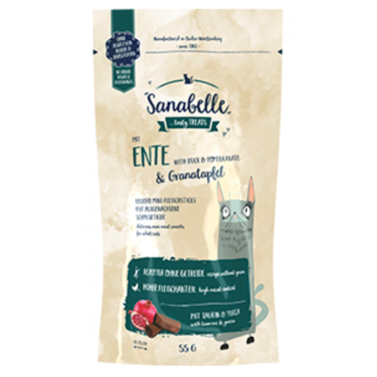 Bosch Sanabelle Cat Sticks Duck Pomegranate, 55 гр - это уникальное лакомство со вкусом утки и граната для кошек любых пород.