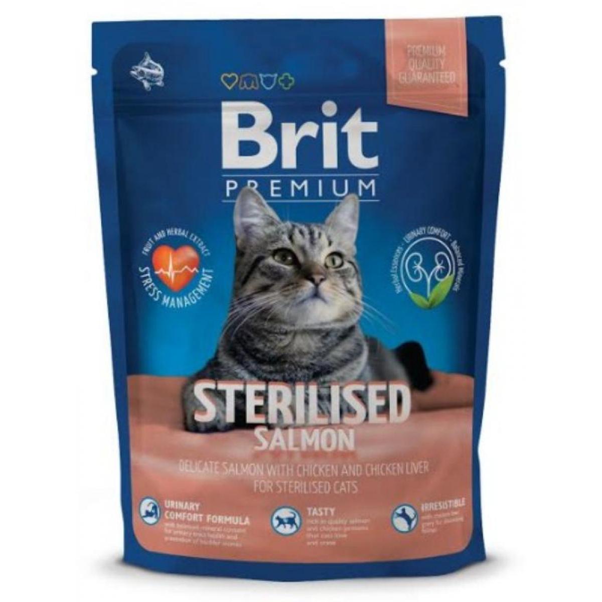 Brit Premium Cat Sterilised Salmon - это сухой корм премиум-класса с лососем для кастрированных котов и стерилизованных кошек.