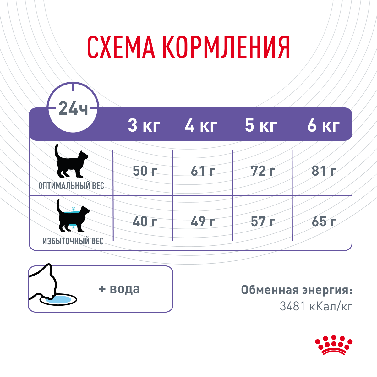 2) Контроль веса: помогает снизить риск набора избыточного веса. Рацион отличается умеренным содержанием жиров и адаптированной калорийностью, помогает вашей кошке поддерживать оптимальный вес.