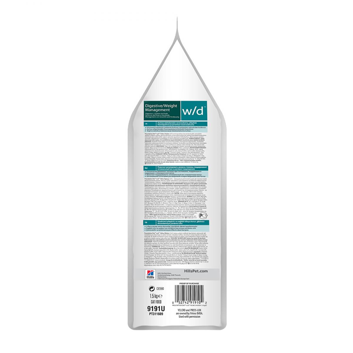 Hill's Prescription Diet w/d Digestive для кошек (Курица) — сбалансированный корм для борьбы с лишним весом и поддержки правильной работы желудочно-кишечного тракта у кошки.