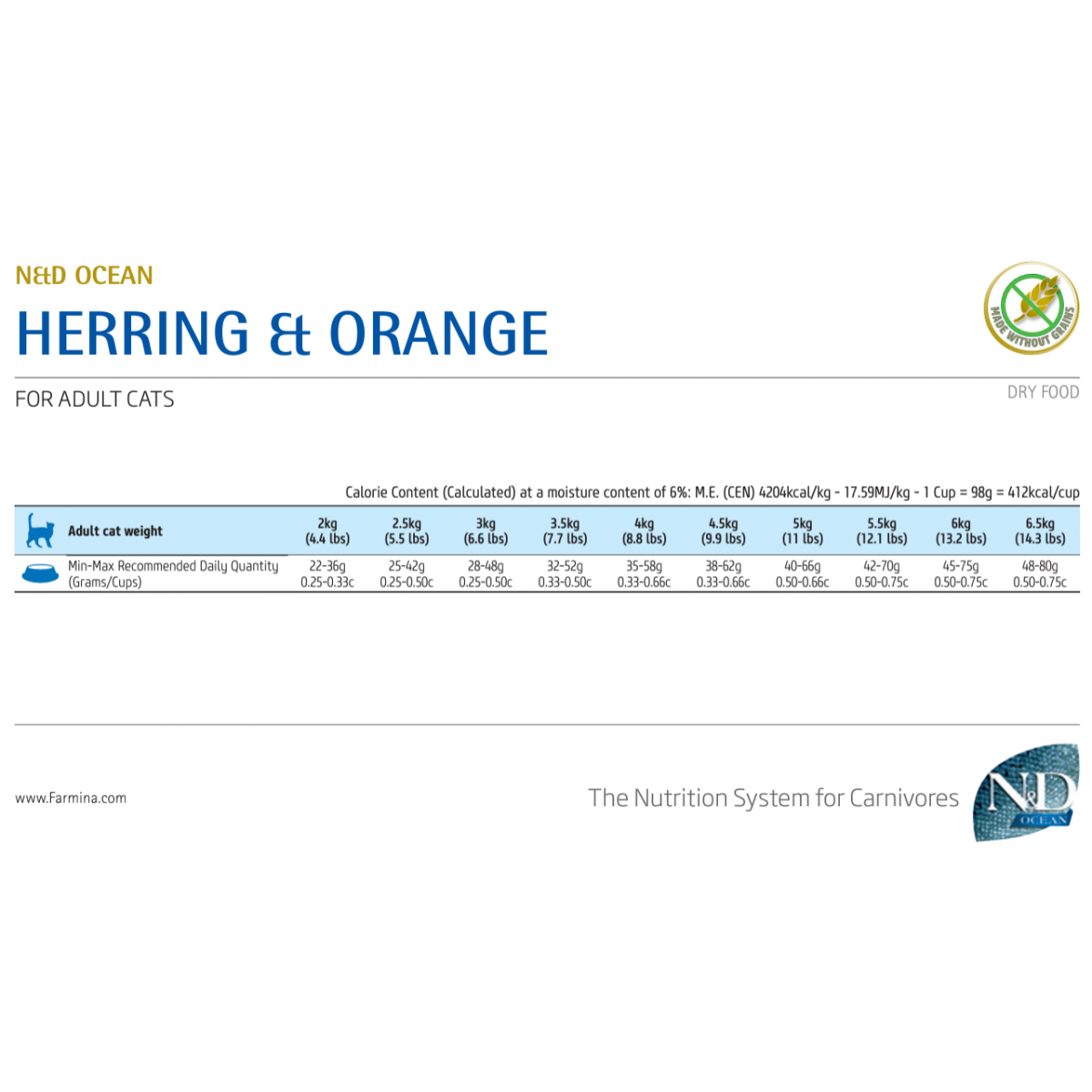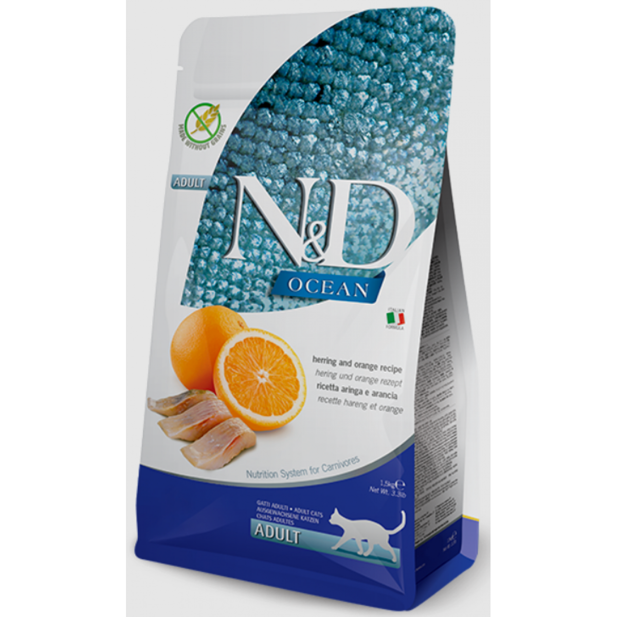 Farmina N&D Ocean Grain Free Adult (беззерновой корм для взрослых кошек, Сельдь, апельсин)