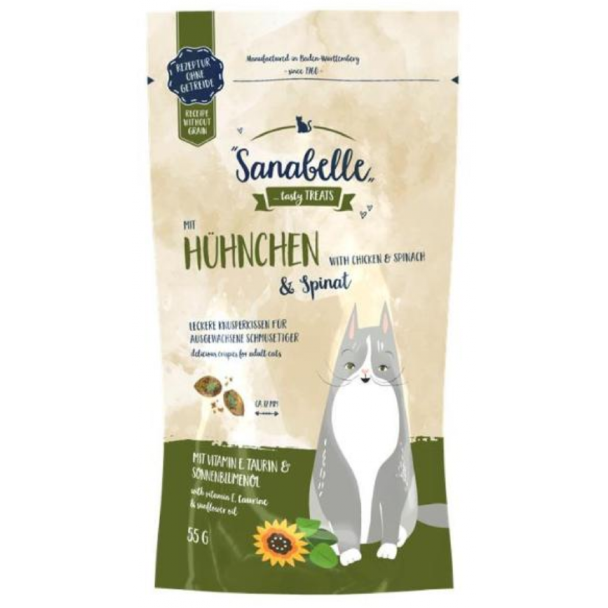 Bosch Хрустящие подушечки (лакомство для кошек, Курица со шпинатом)