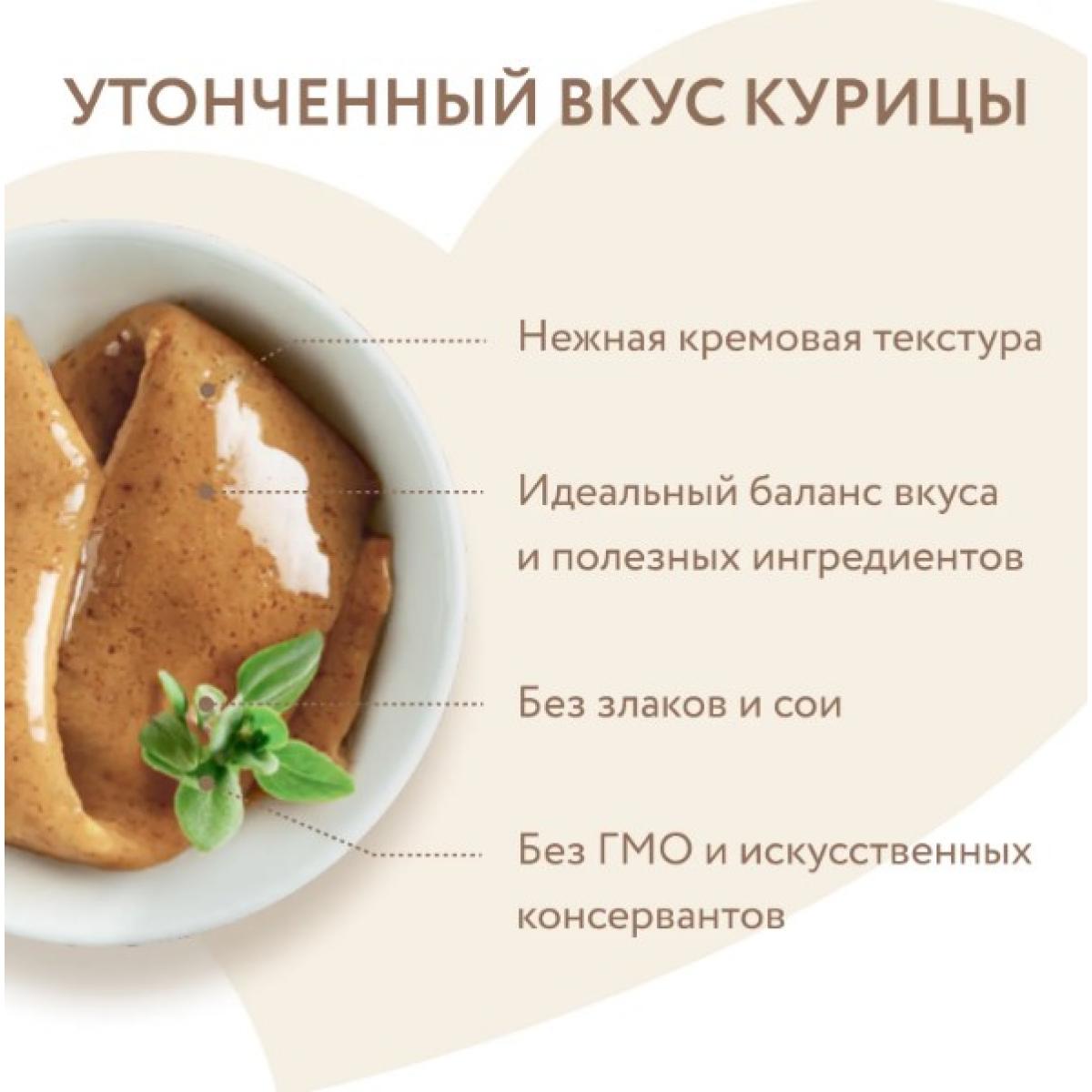 Крем-лакомство с курицей Диетическая куриная грудка Крем-лакомство «Мнямс» с курицей – это изысканное угощение с нежнейшей кремовой консистенцией. Утонченный вкус приводит кошек в восторг, а яркие эмоции довольных любимцев при кормлении с рук дарят хозяевам ощущение полного счастья. Подается как порционное угощение, или добавляется в виде аппетитного соуса к основному рациону для обогащения вкуса привычных блюд. Изготовлено по новейшей японской технологии и соответствует мировым стандартам качества.